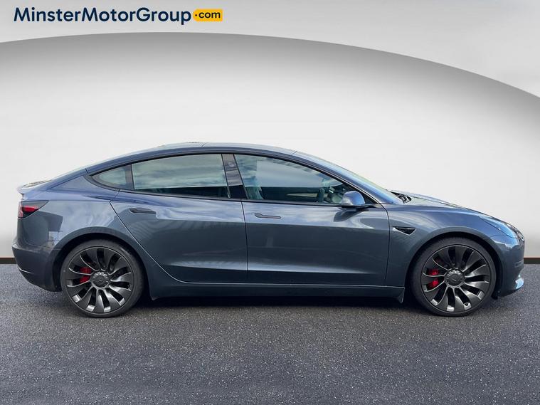 This 2022 Tesla Model 3 Performance is equipped with an 82 kWh battery, providing an impressive maximum range of 340 miles when new. Charging at home on a 7kW charger will take approximately 12 hours for a full charge, while rapid public charging can replenish the battery from empty to 80% in as little as 26 minutes. The Performance variant of the Model 3 truly stands out, offering a remarkable 0-60mph acceleration time of just 3.1 seconds, demonstrating its superior performance capabilities compared to other vehicles in its class. Furthermore, this model features generous boot space, making it a practical choice for everyday use and longer journeys alike..