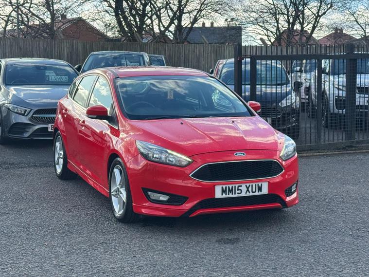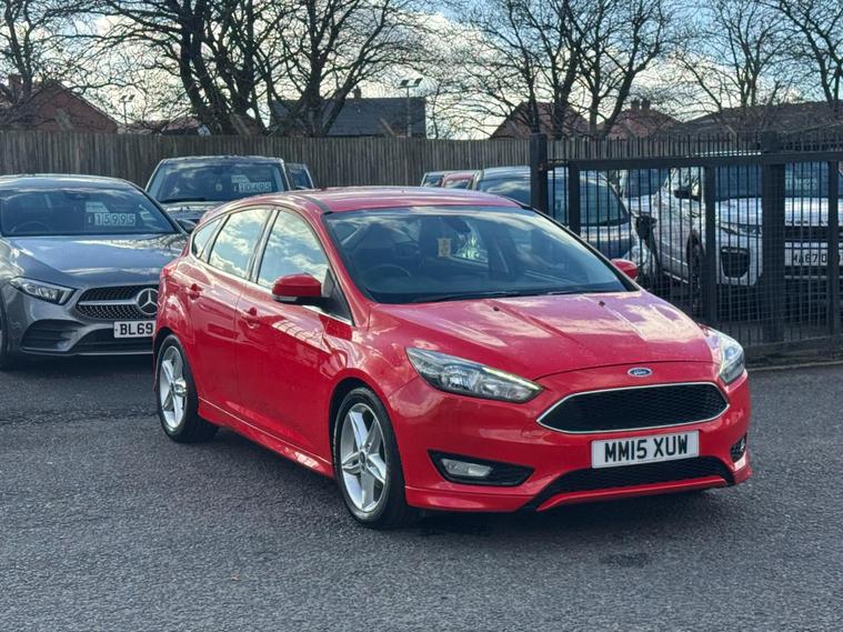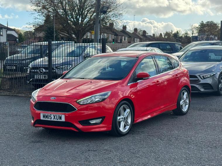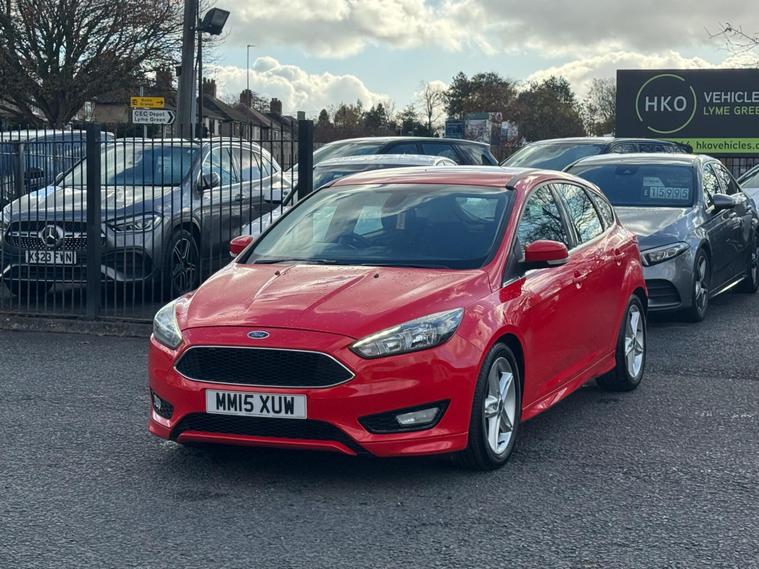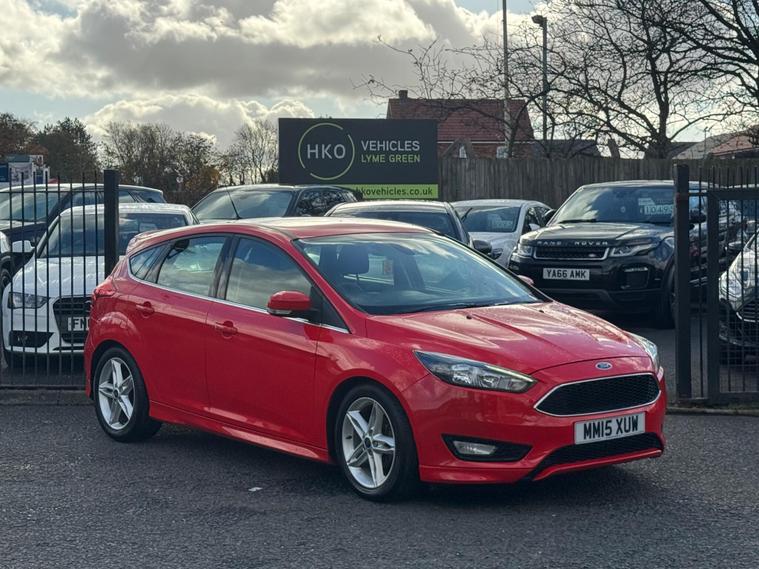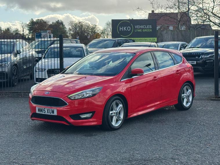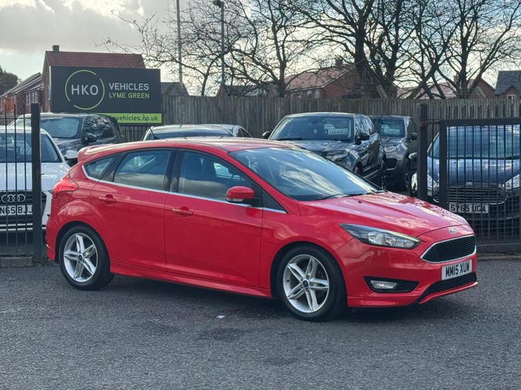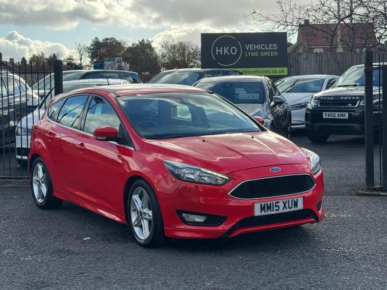 Welcome to HKO Vehicles Lyme Green.We are pleased to present this eye-catching 2015 (15) Ford Focus 1.0T EcoBoost Zetec S, finished in vibrant Race Red with a smart, sporty interior. As an AA Approved Dealer, all our vehicles include 12 months AA Breakdown Cover, a full service history, 12 months MOT, and finance options available to suit your budget.This Focus has covered 86, 000 miles and remains a fantastic example of Ford’s popular hatchback — combining style, performance, and efficiency. The acclaimed 1.0T EcoBoost petrol engine delivers an impressive 125ps, offering lively performance with excellent fuel economy, while the 6-speed manual gearbox provides a smooth and engaging drive.The Zetec S trim gives the car a sporty edge, featuring sleek body styling and a refined interior designed for both comfort and practicality. It’s clear this car has been well maintained and is ready to drive away today.Manufacturer Specifications & Features:	•	1.0T EcoBoost Petrol Engine (125ps) – Euro 6 compliant	•	6-Speed Manual Transmission	•	Sporty Zetec S Styling Pack	•	17-inch Alloy Wheels	•	Front Fog Lights and Rear Spoiler	•	Air Conditioning / Climate Control	•	Ford SYNC Infotainment System with Voice Control	•	Bluetooth Connectivity / DAB Digital Radio / USB / AUX	•	Multi-Function Leather Steering Wheel	•	Cruise Control and Speed Limiter	•	Electric Windows and Mirrors	•	Quickclear Heated Front Windscreen	•	Trip Computer and Driver Information Display	•	ISOFIX Child Seat Mounting Points	•	Split-Folding Rear Seats	•	ABS, ESP, Traction Control, and Multiple AirbagsEvery vehicle at HKO Vehicles is prepared to a high standard, with a full pre-delivery inspection carried out for quality and reliability assurance.Contact us today to arrange a viewing or test drive of this excellent Ford Focus Zetec S. Discover the difference with HKO Vehicles Lyme Green – where quality and customer satisfaction come first..