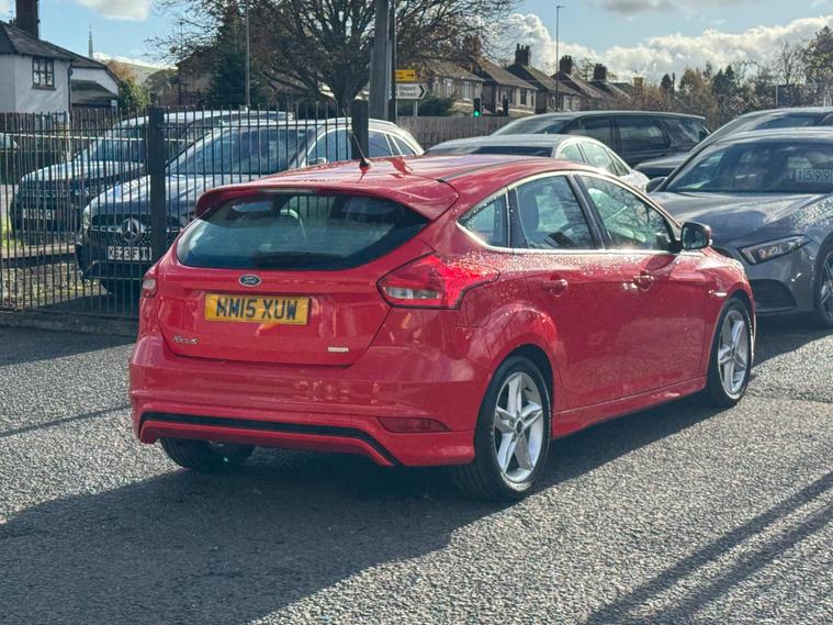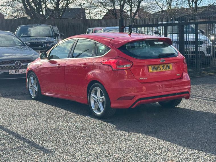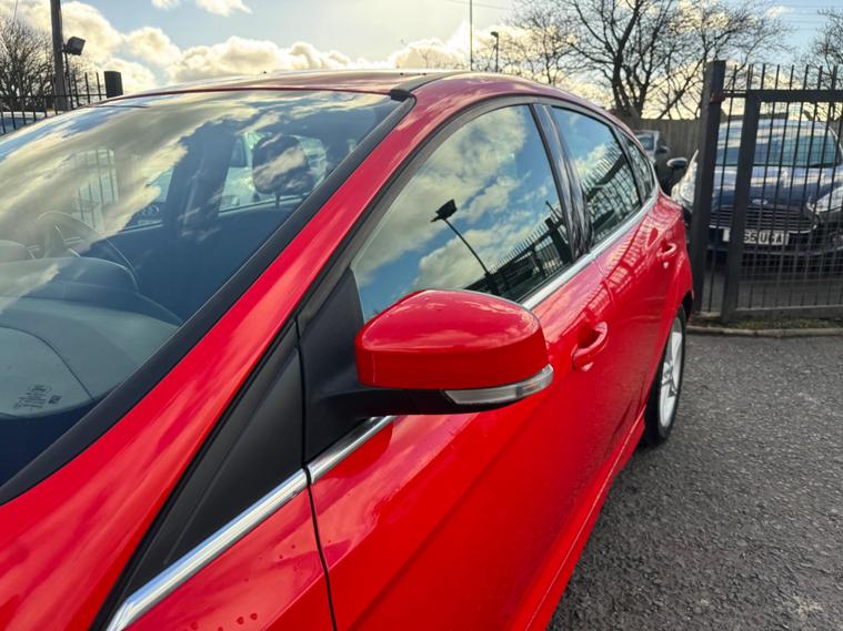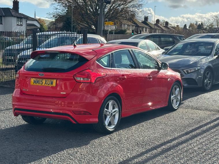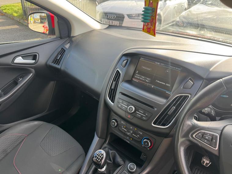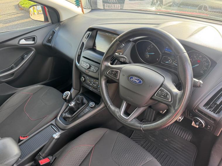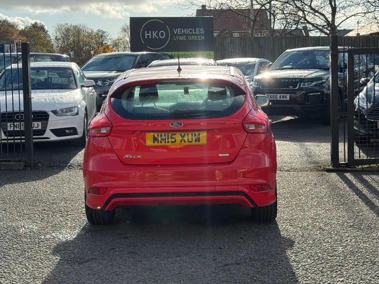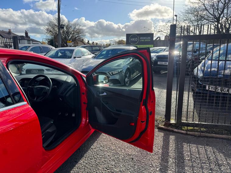 Welcome to HKO Vehicles Lyme Green.We are pleased to present this eye-catching 2015 (15) Ford Focus 1.0T EcoBoost Zetec S, finished in vibrant Race Red with a smart, sporty interior. As an AA Approved Dealer, all our vehicles include 12 months AA Breakdown Cover, a full service history, 12 months MOT, and finance options available to suit your budget.This Focus has covered 86, 000 miles and remains a fantastic example of Ford’s popular hatchback — combining style, performance, and efficiency. The acclaimed 1.0T EcoBoost petrol engine delivers an impressive 125ps, offering lively performance with excellent fuel economy, while the 6-speed manual gearbox provides a smooth and engaging drive.The Zetec S trim gives the car a sporty edge, featuring sleek body styling and a refined interior designed for both comfort and practicality. It’s clear this car has been well maintained and is ready to drive away today.Manufacturer Specifications & Features:	•	1.0T EcoBoost Petrol Engine (125ps) – Euro 6 compliant	•	6-Speed Manual Transmission	•	Sporty Zetec S Styling Pack	•	17-inch Alloy Wheels	•	Front Fog Lights and Rear Spoiler	•	Air Conditioning / Climate Control	•	Ford SYNC Infotainment System with Voice Control	•	Bluetooth Connectivity / DAB Digital Radio / USB / AUX	•	Multi-Function Leather Steering Wheel	•	Cruise Control and Speed Limiter	•	Electric Windows and Mirrors	•	Quickclear Heated Front Windscreen	•	Trip Computer and Driver Information Display	•	ISOFIX Child Seat Mounting Points	•	Split-Folding Rear Seats	•	ABS, ESP, Traction Control, and Multiple AirbagsEvery vehicle at HKO Vehicles is prepared to a high standard, with a full pre-delivery inspection carried out for quality and reliability assurance.Contact us today to arrange a viewing or test drive of this excellent Ford Focus Zetec S. Discover the difference with HKO Vehicles Lyme Green – where quality and customer satisfaction come first..