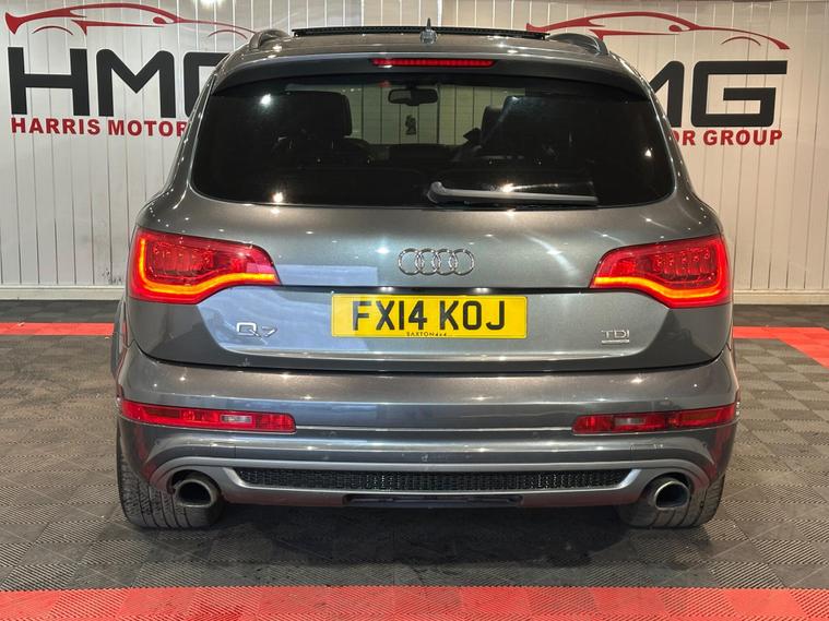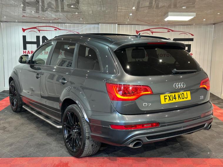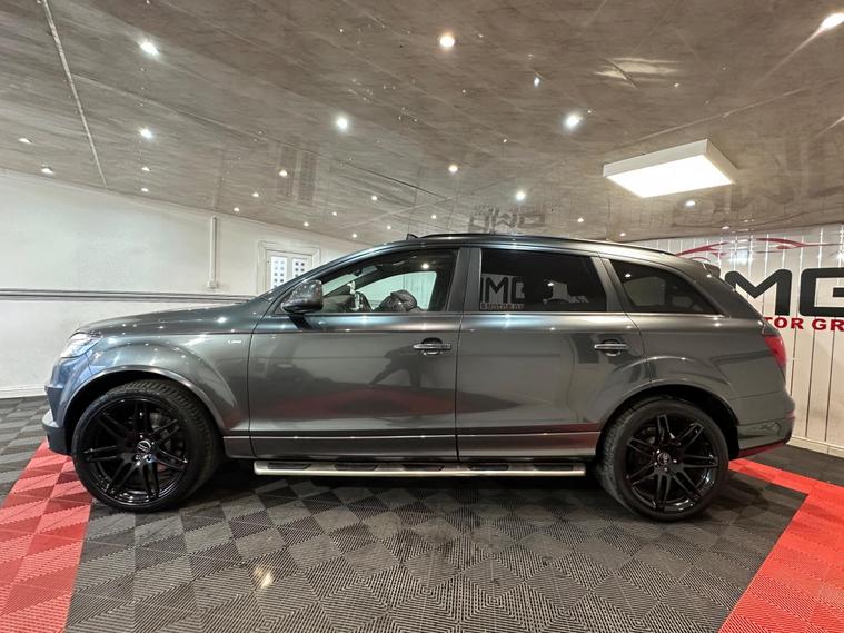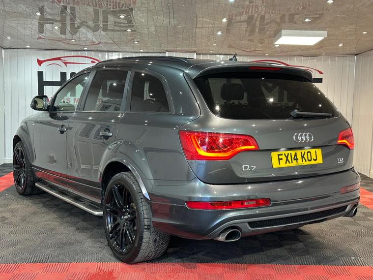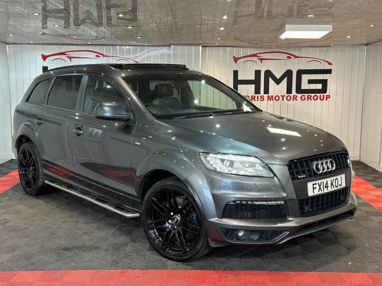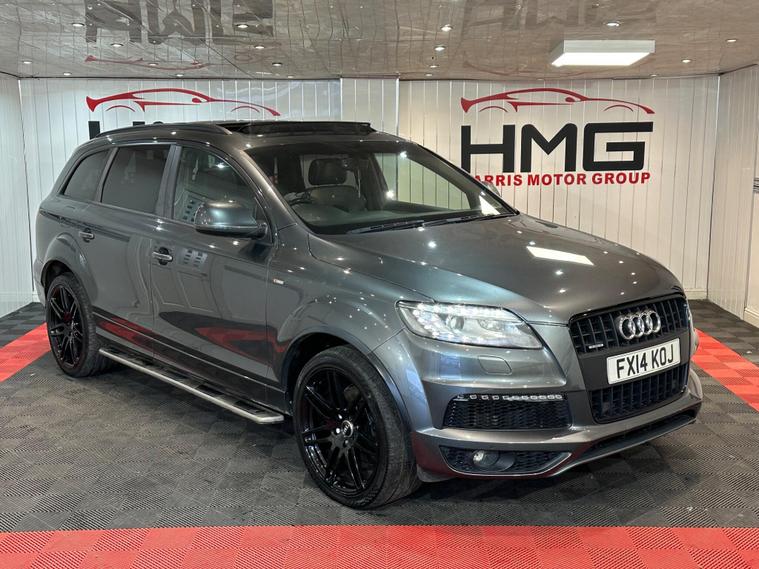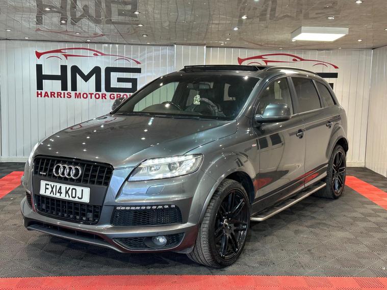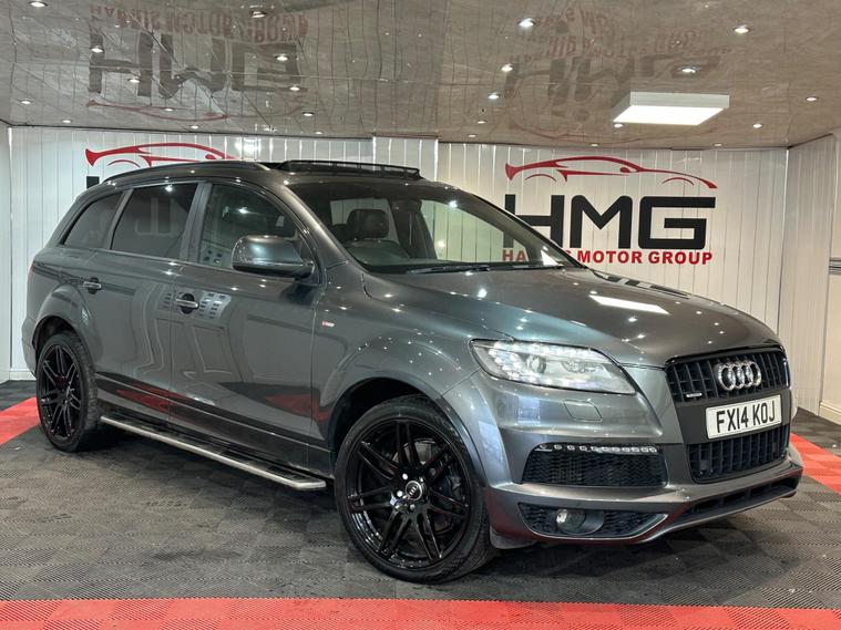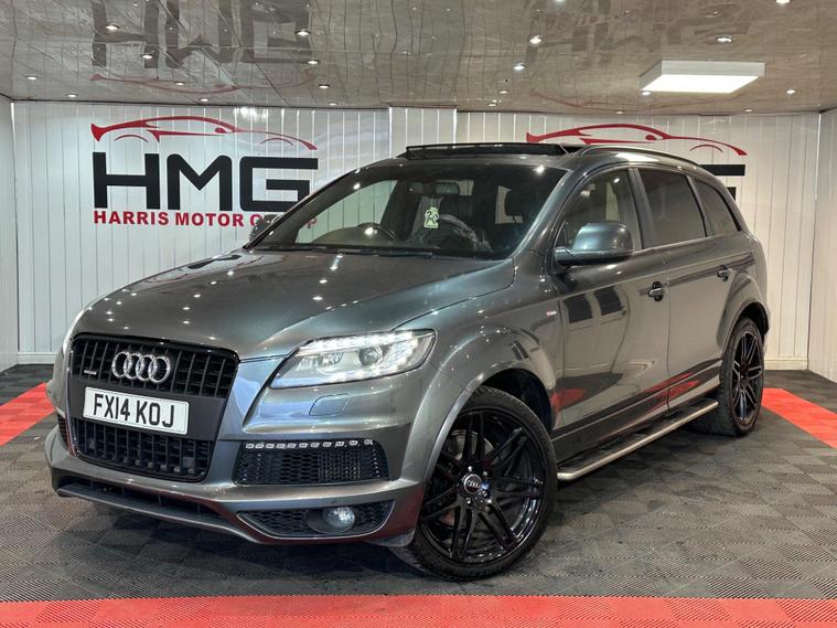 This 2014 Audi Q7 TDI V6 S line Plus boasts a full service history and a clear vehicle history check, offering peace of mind for its next owner. This impressive seven seater features a powerful 3.0 litre diesel engine paired with four wheel drive, ensuring capability and confidence on the road. The S line Plus trim enhances its appeal with a panoramic glass sunroof, electric front seats with memory function, and a premium BOSE surround sound system for an elevated driving experience. Rear cardan reading lights add a touch of thoughtful convenience.The Q7 TDI V6 S line Plus is designed for both performance and practicality, accelerating from 0 to 62mph in a swift 7.8 seconds. Its substantial 3200 kg towing weight makes it a versatile choice for those needing to tow. With an MOT valid until October 2026 and its placement in a low insurance group, this Audi Q7 presents a compelling package that stands out from other vehicles in its class, offering a blend of luxury, capability, and value.FREE DELIVERY WITHIN 40 MILES AT ADVERTISED PRICE!!  Walk around video available via whats app. Same day delivery available!! 2014 14 Plate Audi Q7 3.0 TDI V6 S line Plus Tiptronic quattro Euro 5 (s/s) 5 door. Drives Flawlessly without any issues. Gearbox and engine are spot on. Hpi Clear. 12 Months Mot. 122, 538 Miles Warranted with Service history. 2 keys, Double Panoramic Tilt and Slide roof, Heated seats, Reverse Camera, Sat  Nav, Alloys, Air con and much more. Read specification list below. Ring for more information. Part Exchange at TRADE price. Drive away insurance, Nationwide Delivery and warranties available. Late viewings also available!.