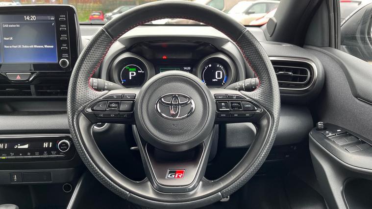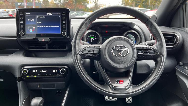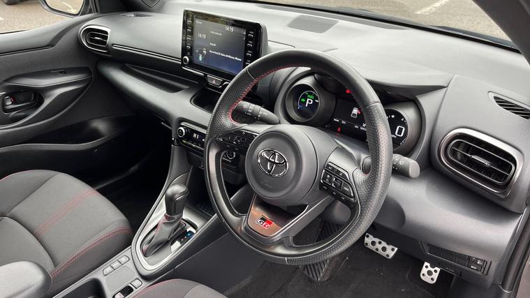 This 2023 Toyota Yaris VVT-h GR SPORT is a superb example, having had only one owner from new and boasting exceptionally low mileage for its age at just 12, 412 miles. As a Toyota manufacturer approved vehicle, it offers peace of mind, and its Euro 6 compliant 1.5L Petrol Hybrid engine ensures an efficient and smooth driving experience. The GR SPORT trim level enhances its appeal, and it comes equipped with desirable features such as Smart Entry with keyless access, Adaptive Cruise Control for relaxed journeys, and Dual-Zone Automatic Air Conditioning to keep everyone comfortable. Automatic headlights further add to the convenience, all integrated within the comprehensive Toyota Safety Sense 2 suite.This Yaris GR SPORT stands out with its impressive fuel economy, achieving a remarkable 64 miles per gallon, and its low CO2 emissions, making it an economical and environmentally conscious choice compared to many other vehicles in its class. The combination of its advanced hybrid technology, the sporty GR SPORT styling, and the comprehensive safety features makes this a compelling option for anyone seeking a reliable and well equipped compact car..