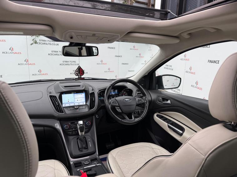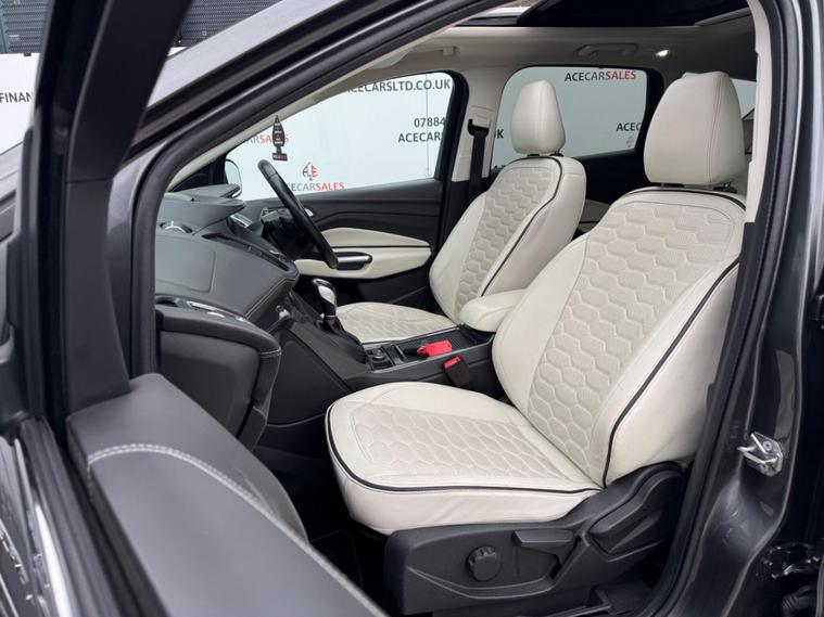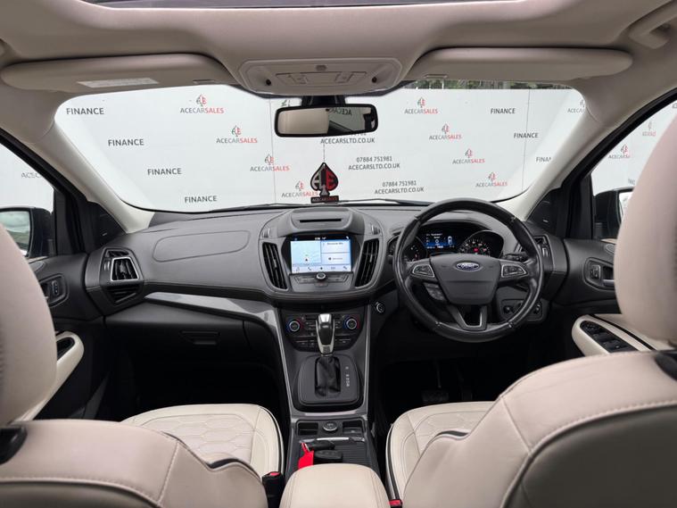 FINANCE & PCP AVAILABLE, COMPLEMENTARY WARRANTY INCLUDED, GOOD CONDITION, WE TAKE PART EXCHANGE! Ford Kuga 2.0 TDCi EcoBlue Vignale Powershift AWD Euro 6 (s/s) 5dr. HPI Clear, Full Service History, 12 Months MOT Included With No Advisories, 1 Owner, 2 Keys, EURO6 ULEZ Compliant, Vignale Edition, Panoramic Glass Sunroof Sliding/Tilting, Keyless Entry, Keyless Start, Cruise Control, Speed Limiting Function, Reverse Camera, Parking Sensors, Park Assist Function, Start/Stop Function, All Wheel Drive, Electric Power Assisted Steering, Hill Start Assist, Electric Parking Brake, Traction Control, Electronic Stability Programme, Anti-lock Braking System, Emergency Brake Assist, Tyre Pressure Monitoring System, Headlights - Automatic, Bi-Xenon Headlights with Dynamic Bending Adaptive Beam Shape, LED Daytime Running Lights, Fog Lights - Front, Rear Lights - LED, Interior Ambient Lighting, Rain Sensitive Windshield Wipers, Electric Opening/Closing Tailgate, Electric Windows, Electric Mirrors, Powerfolding Mirrors, Electric Front Drivers Seat With Memory Function, Front Heated Seats, Heated Steering Wheel, Automatic Dual Zone Climate Control, Air Conditioning, Front Heated Screen, Rear Screen Demister, Colour Touchscreen Media Interface, Drivers Information Cluster, SONY Sound System, Navigation, Traffic Information, Android Auto, Bluetooth, Radio, DAB, AUX, USB, Telephone Connection, Full Leather Seats In Cream Vignale Design, Rear Table Trays, Vignale Design Door Sills, Privacy Glass, Roof Rails, Exterior Badging, 19inch Alloy Wheels.ALL VEHICLES ARE FULLY INSPECTED PRIOR TO SALE. Wish to make this purchase hassle free with ease? Feel free to enquire about our competitive Financial packages. We can assist you in securing finance for your New car with ease- regardless of your credit status/history. All of our cars are regularly price checked to be amongst the most competitive on the market! We include a COMPLEMENTARY WARRANTY on all our vehicles. Be our next happy customer today! dealer's website