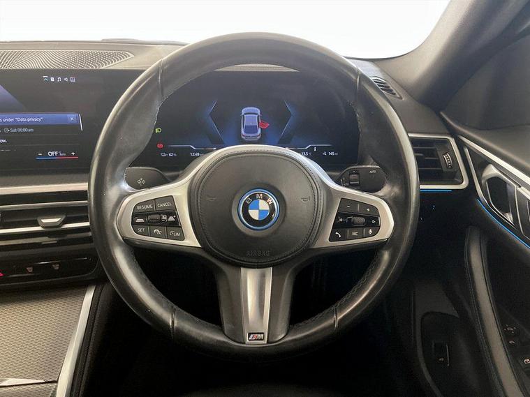 This 2022 BMW i4 40 M Sport is a superb example, having had only one owner since new. As a fully electric vehicle, it offers a compelling blend of performance and efficiency. The M Sport trim ensures a dynamic driving experience, complemented by the advanced BMW Live Cockpit Plus, which includes Bluetooth connectivity. Comfort is assured with front heated seats and automatic air conditioning with climate control. For convenience, it features a Reversing Assist Camera and the comprehensive Parking Assistant system, making manoeuvring effortless. This electric BMW also offers a generous boot space, ideal for everyday practicality. Its acceleration is a notable highlight, achieving 0-62mph in a swift 5.7 seconds, demonstrating its sporty capabilities. For peace of mind this vehicle has only had 1 registered owner and has completed a multi point AA dealer's website finance is also available.We are open 7 days a week and have more than 1500 cars to choose from.All our Euro 4 Petrol and Euro 6 Diesel vehicles meet the ULEZ standard.Vehicle specification can be found below. From time to time vehicles have manufacturer recalls notified. Please read our recall policy on our website for further information. Please be advised that the advertised electric vehicle (EV) listings may experience battery degradation over time, resulting in reduced performance and range compared to the original specifications. Factors such as usage patterns, environmental conditions, and charging practices can contribute to this degradation. While we strive to provide accurate information, the actual battery health and performance of each EV may vary. Customers are encouraged to conduct thorough research and consider the potential impact of battery degradation before making a purchase decision. We recommend consulting with a qualified technician or conducting a battery health inspection for further assessment..