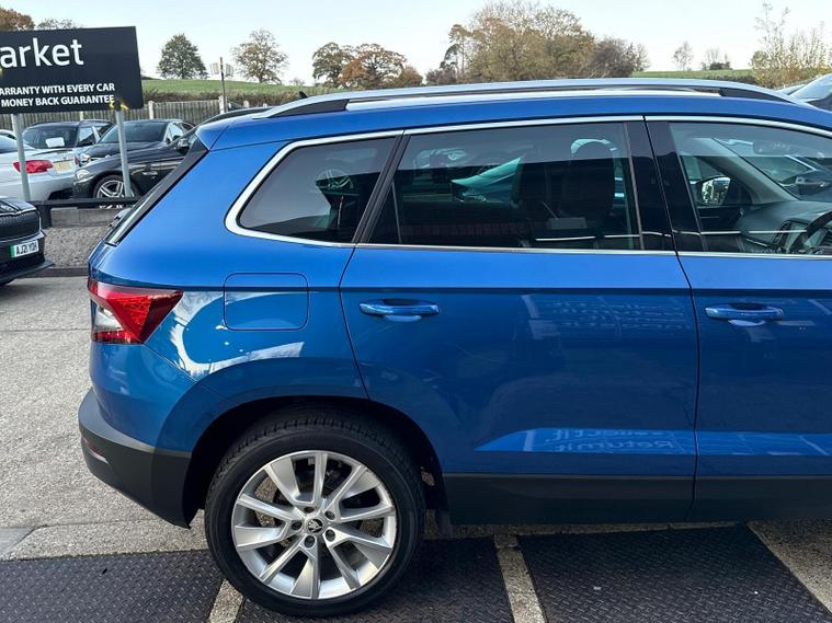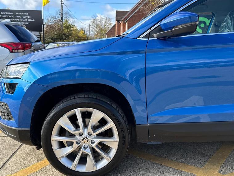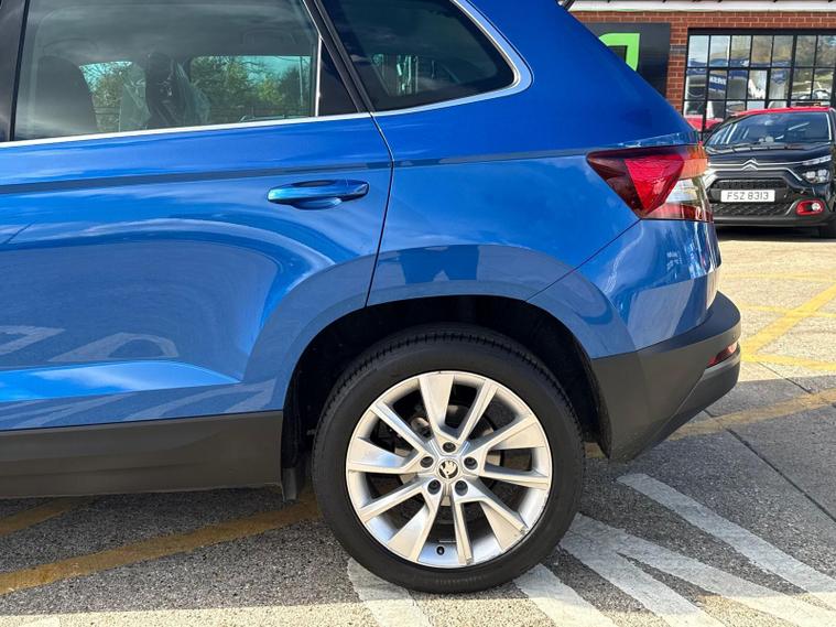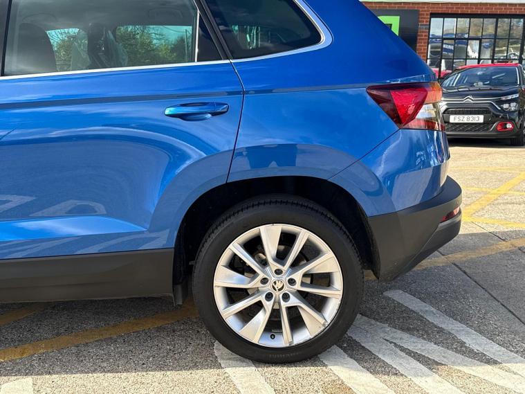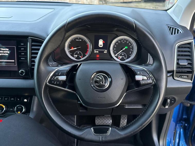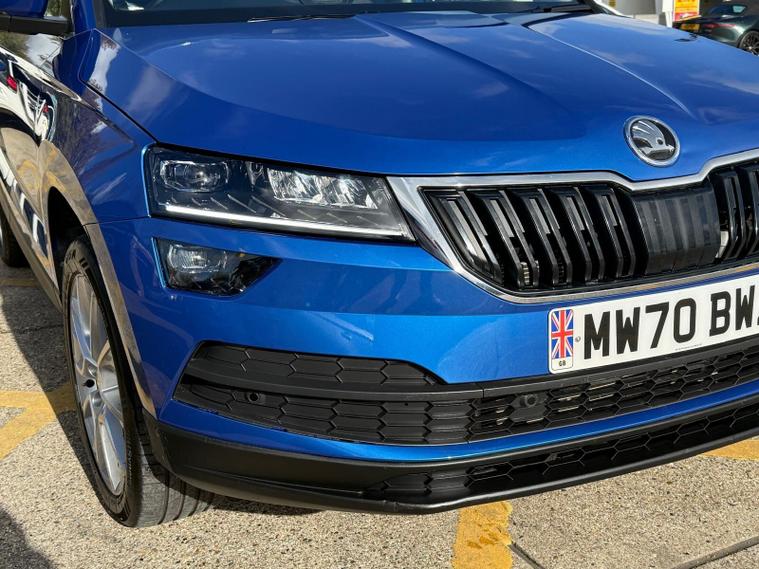 This 2021 Skoda Karoq TSI SE L presents an exceptional opportunity with an incredibly low mileage of just 1111 miles. This Euro 6 compliant 1.5 litre petrol engine model, in SE L trim, offers a refined driving experience. It comes equipped with a host of desirable features including heated front seats for added comfort, full LED headlights with adaptive front lighting and LED daytime running lights for superior visibility. The convenience of KESSY keyless entry and start system with SAFE system, along with a light and rain sensor and auto dimming rear view mirror, further enhances its appeal. Enjoy your favourite stations with the DAB digital radio and stay connected with Bluetooth functionality.The Skoda Karoq stands out with its impressive acceleration, reaching 0-60mph in a brisk 8.5 seconds, demonstrating its responsive performance. This vehicle also boasts a remarkably large boot space, offering ample room for luggage, shopping or sporting equipment, making it a practical choice for families and active individuals alike. Furthermore, its placement in a low insurance group indicates that running costs are likely to be more affordable compared to similar vehicles. These highlights collectively underscore the exceptional value and capability of this Skoda Karoq..