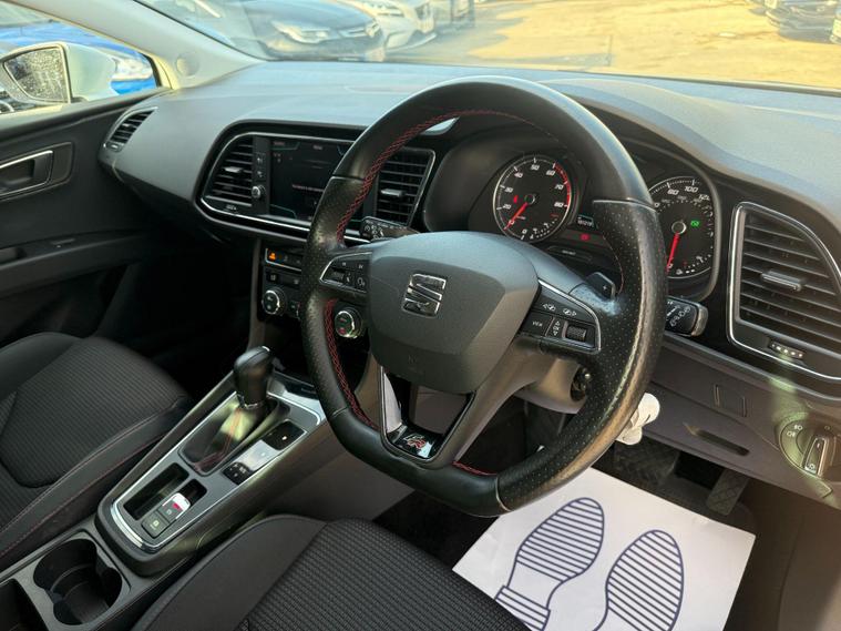 • 2 Owners• Automatic Gearbox• 5 Service Stamps-- Fresh service will be done upon sale• MOT Expiry date 19/09/2026 • 3 Months Warranty• 12 Months AA free basic Breakdown CoverMiddle Green Motors (MGM) Limited presents this SEAT Leon 1.5 TSI EVO FR DSG Euro 6 (s/s) 5dr in excellent condition. The Vehicle comes with Cruise Control, Lane Departure Warning, Lane Keeping Assist , Bluetooth, Apply CarPlay, 1 Key, Front &Rear Parking Sensors, Central Locking, Electronic Brake Assist & many more. The vehicle has full-service history, 12 AA months breakdown covers with 3 months warranty. Car has been prepped & cleaned to a high standard in both the interior & exterior. We invite you to view and test drive this car, with part exchanges being welcome. We are part of AA Dealership Group & all our vehicles come with min 6 months MOT, Offer Road test, provide free history check on all vehicles & all vehicles has been inspected by our workshop team. FINANCE Available, Extended Warranty available. Phone Lines open from 9am-8pm 7 days a week. For more info, please visit our website dealer's website APPOINTMENT ONLY.