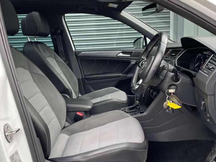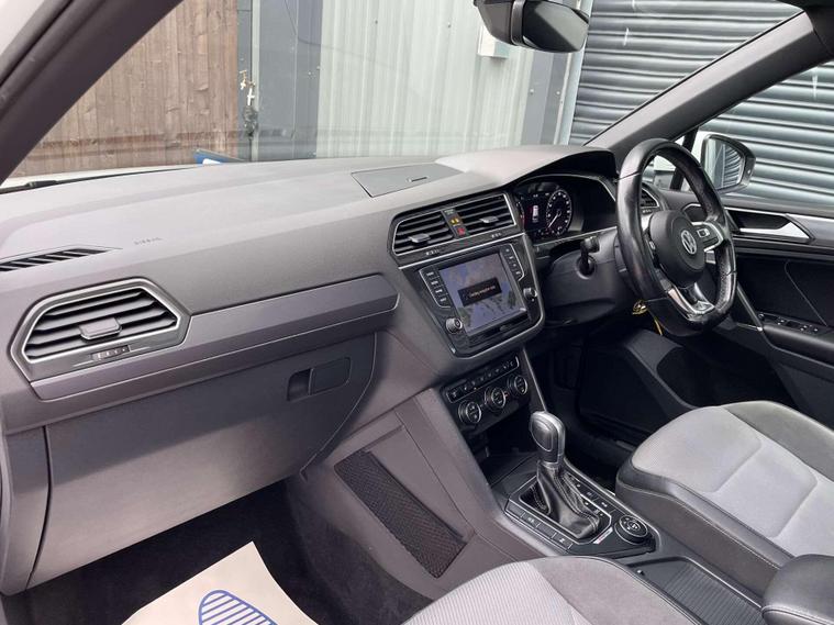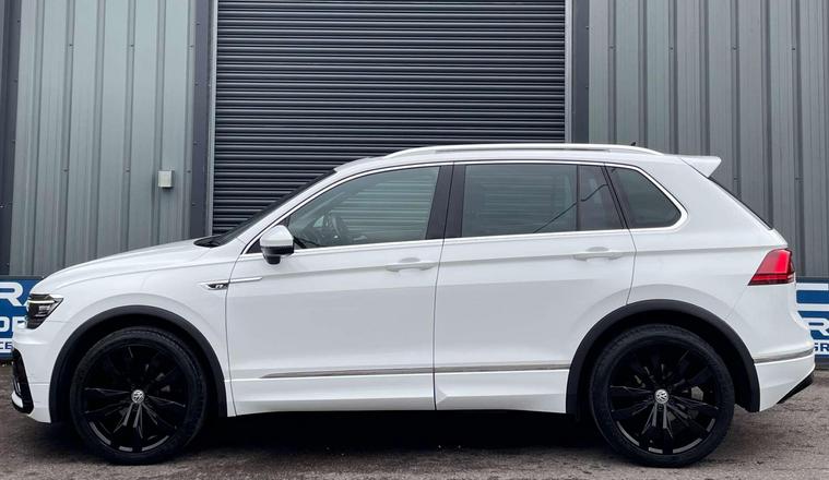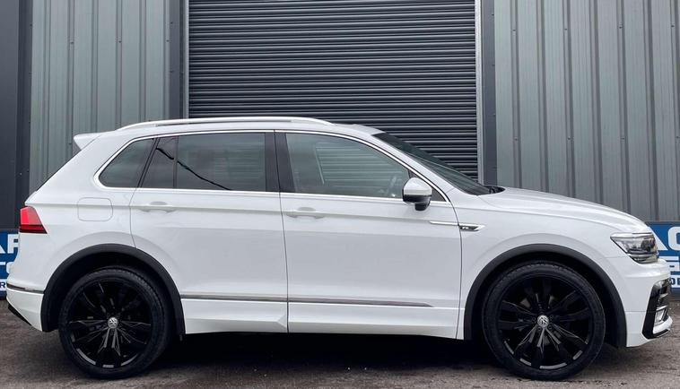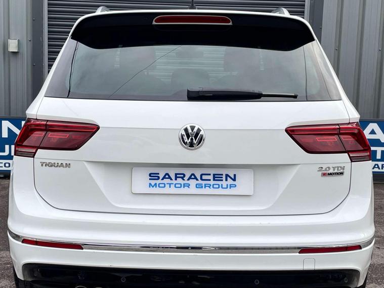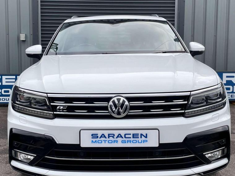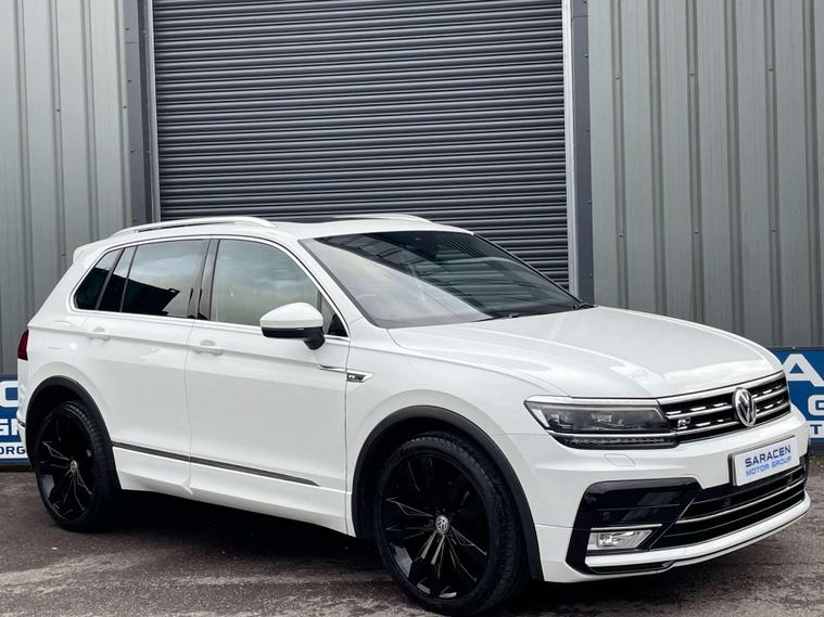 Volkswagen Tiguan 2.0 TDI BlueMotion Tech R-Line DSG 4Motion Euro 6 (s/s) 5dr. ULEZ Free. Finished in signature pure white and a half black Vienna leather interior with contrast stitching.20'' Suzuka gloss black alloys, satellite navigation, Apple CarPlay, Android Auto, sliding panoramic roof, Bluetooth connectivity, DAB radio, USB/AUX integration, adaptive cruise control, front/rear parking sensors, front/fatigue/lane assist, electric folding door mirrors, heated front washer nozzle, tinted rear glass, 3D effect tail lights, automatic headlights, dynamic light assist, front fog lights, ambient lighting, climate control, heated front seats, interior light package, leather multifunction steering wheel, winter pack and rain sensing wipers. Here at Saracen Motor Group we have been awarded AA Platinum dealership recognition along with being nominated for best customer service by Autotrader for 2021, 2022, 2023, 2024 & 2025. We are a 5-star dealership with over 600 5-star reviews across all internet platforms including Autotrader and have been regarded as one of the best dealerships to buy from in the UK.Our preparation inspected each vehicle to the highest level possible for it’s age and mileage. You can rest assure your next car has been cared for to the highest standard. Service history, V5 and the HPI certificate will all be present on viewing and collection. With our location based in Battlesbridge, Essex you can enjoy a haggle-free buying experience where you can drive away the same day if prior arranged, additional fees apply please see our website for details..