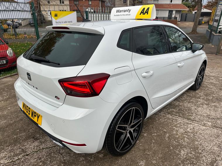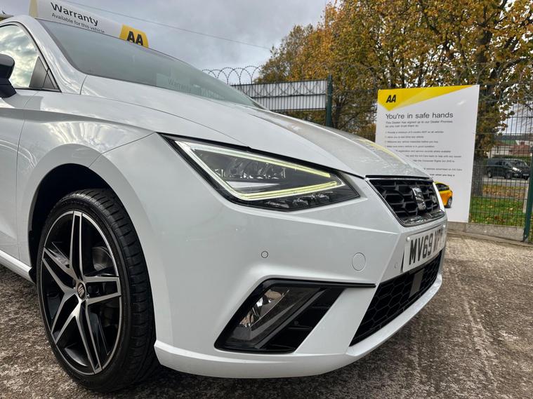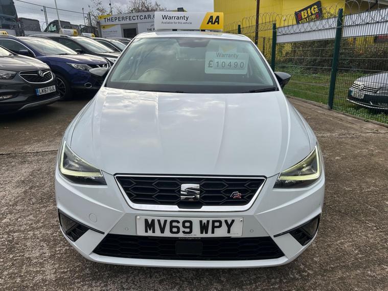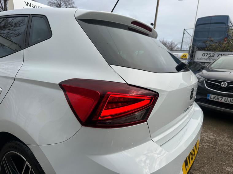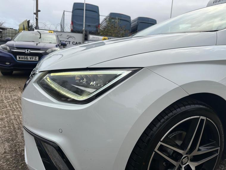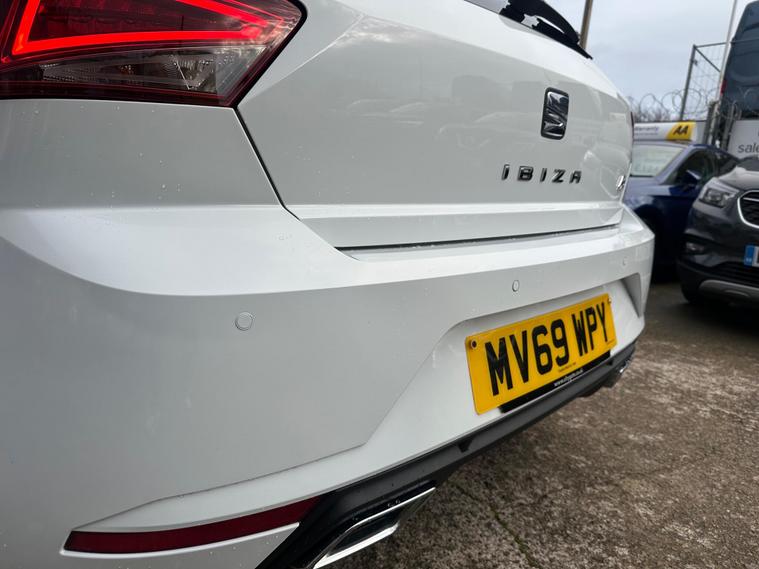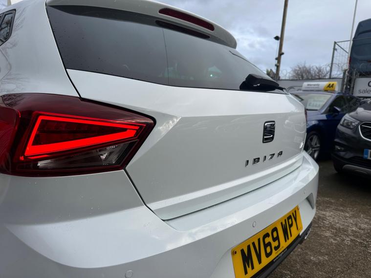 This 2019 SEAT Ibiza TSI FR Sport boasts a clear vehicle history, offering you peace of mind. This stylish hatchback is equipped with a responsive 1.0 litre petrol engine, meeting Euro 6 emissions standards. Inside, you'll find a comfortable cabin featuring dual zone climate control and the convenience of auto headlights. Stay connected and entertained with Full Link smartphone integration, compatible with both Android Auto and Apple CarPlay, alongside Bluetooth audio streaming and a handsfree system. For added ease, rear parking sensors are included, providing parking assistance.Experience impressive efficiency with this Ibiza, achieving a notable 51 miles per gallon, which indicates it is more economical than many similar vehicles. Its low CO2 emissions also mean it is kinder to the environment. Furthermore, you'll appreciate the generous boot space, offering ample room for your shopping or luggage, making it a practical choice for everyday life and longer journeys..