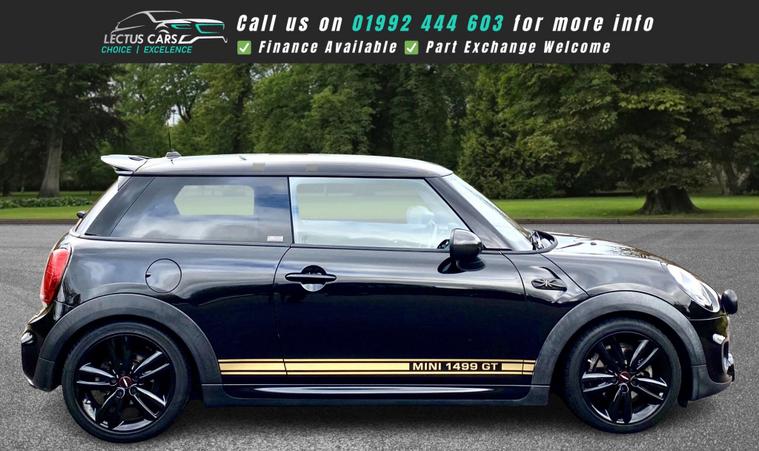 Discover this exceptional 2017 MINI Hatch One 1499 GT with remarkably low mileage of just 18, 000 miles, a true testament to its careful ownership complimented by a FULL service history with the last one at 16, 655 miles in June 2025. This Euro 6 compliant 1.5 litre petrol model boasts a clear vehicle history check, offering peace of mind. Inside, you'll find a host of convenient features including manual air conditioning, Bluetooth hands free function with USB audio, and the MINI Connected system which seamlessly integrates with your mobile device The car also offers easy entry access to the rear seats, with a memory function for the driver's seat base, and a Visual Boost radio for an enhanced audio experience.With this vehicle you get a host of accessories including John Cooper Works Aerodynamic Kit, John Cooper Works Leather Steering Wheel, John Cooper Works Roof Spoiler, John Cooper Works Sport Pack, John Cooper Works Sport Seats. 17in Alloy Wheels in Gloss Black. Cruise Control with Brake Function. DAB Tuner. Multifunction Controls for Steering Wheel. Front & rear dash camera Plus much more.This MINI Hatch One 1499 GT stands out with its impressive fuel economy, achieving a remarkable 57 miles per gallon, making it an economical choice for your daily journeys. Its acceleration from 0 to 62 miles per hour in 10.1 seconds demonstrates a responsive and engaging driving performance. These highlights, combined with its low mileage and comprehensive features, position this vehicle as a superior option compared to other similar models on the market.SEE THE VIDEO IN THE ADVERT or use this link. https://youtu.be/tYKIOGIM-aA?si=Pn2gypSDwkAP3NA40% Deposit when financing through us.DELIVERY AVAILABLE. The Car Comes With A 6 Month Premium Nationwide Parts And Labour Warranty Finance Available From 10.9 % Apr All Inspections Welcome AA/RAC Px Welcome Viewing By Appointment Only Please Call John On 01992692105 Or 01992692105.