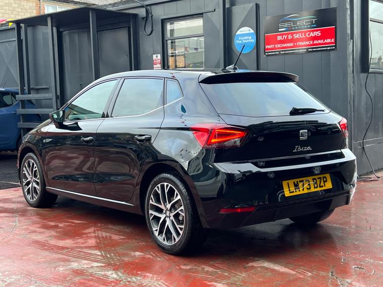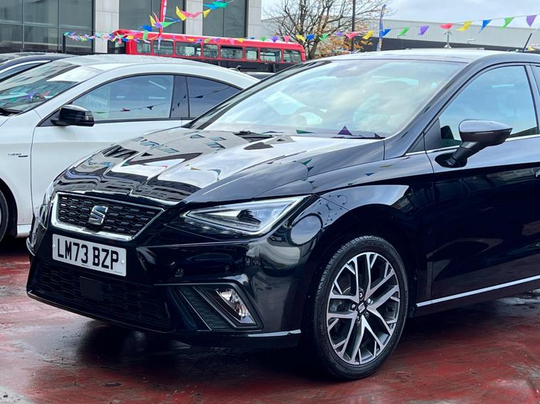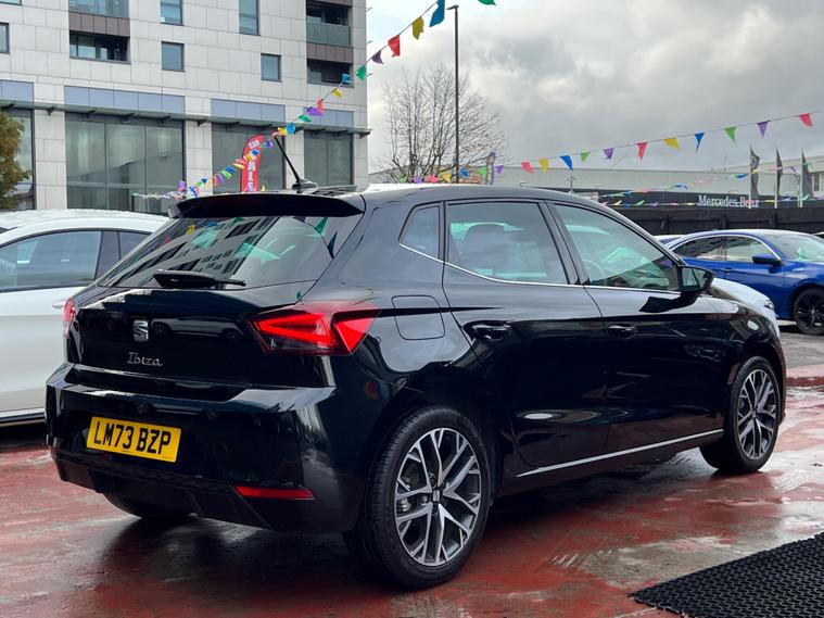 SELECT MOTORS (GB) IS PLEASE TO OFFER YOU THIS STUNNING SEAT IBIZA 1.0 TSI XCELLENCE 5DR IN BLACK COLOUR AND COMPLEMENTED WITH 17IN DYNAMIC MACHINED IN NUCLEAR GREY COLOUR ALLOY WHEELS. THIS VEHICLE HAS A HUGE SPECIFICATION WHICH INCLUDES THE FOLLOWING; SATELLITE NAVIGATION SYSTEM, WIRELESS CARPLAY FOR IPHONE AND ANDROID AUTOS, REAR PARKING SENSORS, BLUETOOTH CONNECTIVITY FOR PHONE AND MEDIA, DAB-FM/AM RADIO, SEAT VIRTUAL COCKPIT SCREEN, 9.2in NAVIGATION SCREEN, GEAR SHIFT PADDLES, DUAL ZONE AIR CONDITIONING, ELECTRIC ADJUSTABLE AND FOLDING DOOR MIRRORS, CRUISE CONTROL, AUTO HEADLIGHTS WITH LED DAYTIME RUNNING LIGHTS, USB MEDIA CABLE, FM/AM RADIO, TYRE PRESSURE WARNING SYSTEM. THIS VEHICLE IS ULEZ EXEMPT.  WE ARE OFFERING NATIONWIDE DELIVERY ON ALL VEHICLE (PLEASE GET IN TOUCH DIRECTLY FOR DETAILS). WE CAN ALSO CONDUCT VIRTUAL VIEWINGS AND ACCOMMODATE ANY REQUESTS YOU MAY HAVE. ALL OUR ADVERTISED STOCK IS TEST-DRIVEN, INSPECTED BY OUR MECHANIC TO MAKE SURE OUR CUSTOMERS DRIVE AWAY WITH THE BEST QUALITY CARS. WE CAN PROVIDE A VIDEO WALK AROUND THIS VEHICLE UPON REQUEST., ALL OF OUR VEHICLES ARE SUPPLIED WITH A 3 MONTHS WARRANTY WITH EXTENDED OPTION. 12 MONTHS FREE AA BREAKDOWN COVER. FINANCE AVAILABLE..