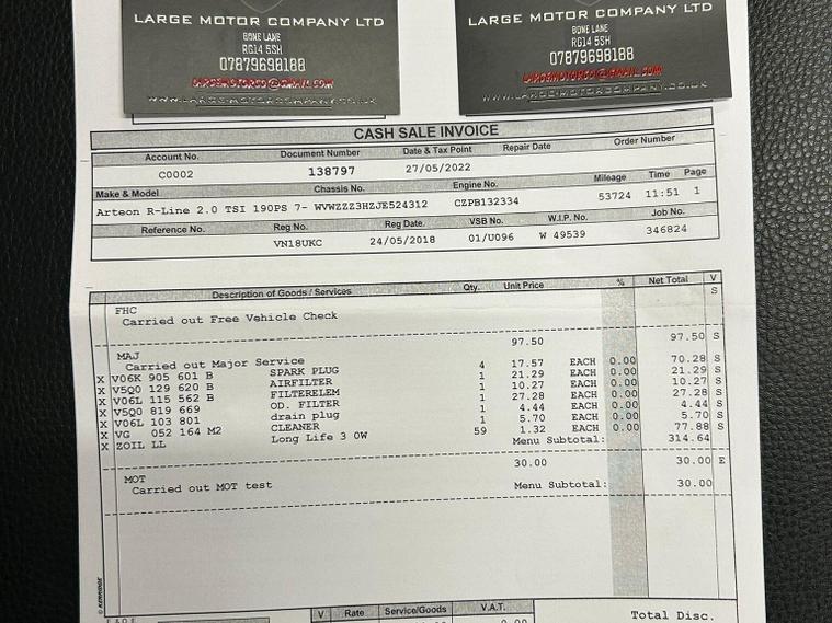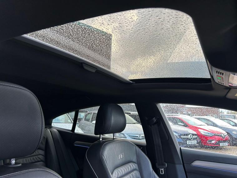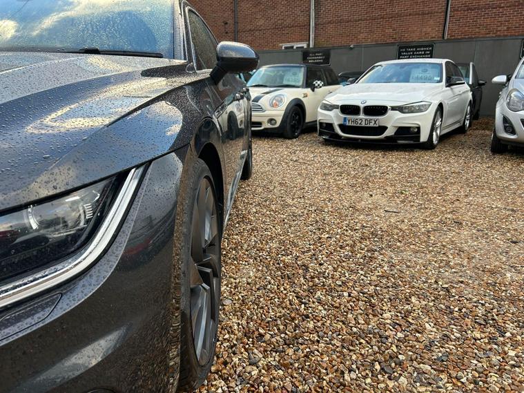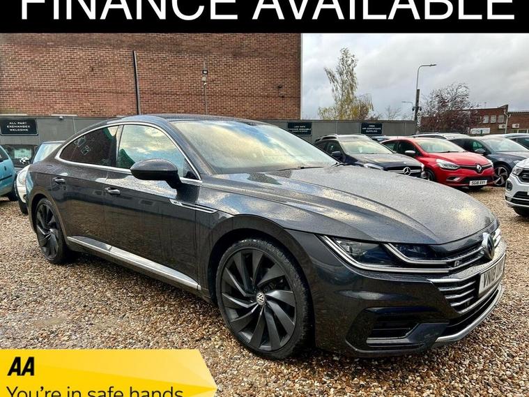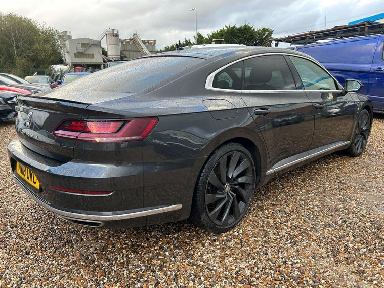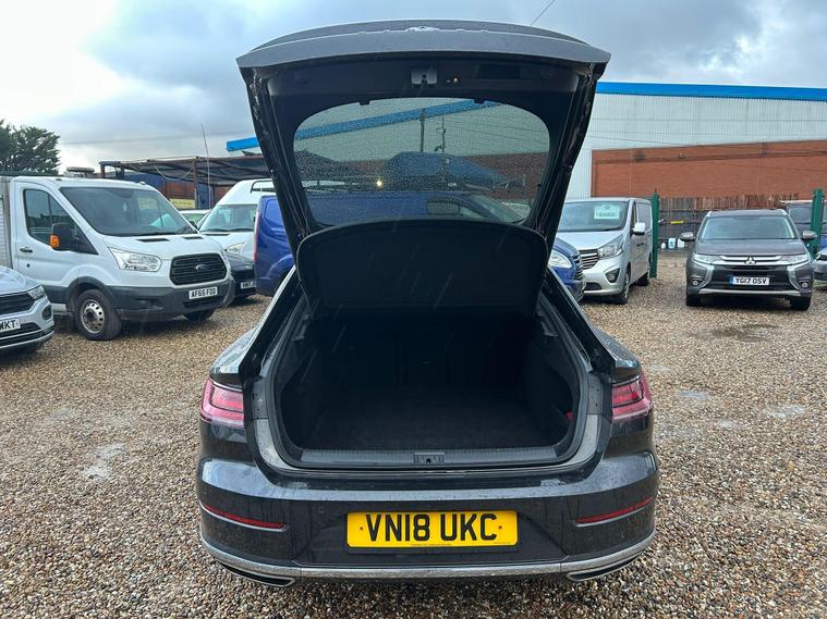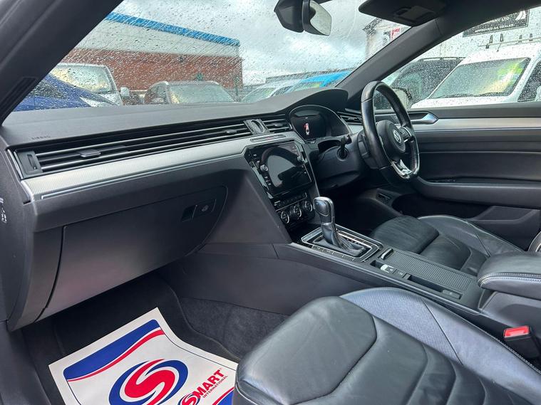 This 2018 Volkswagen Arteon TSI R Line boasts a full service history, with its last service completed at 105, 030 miles, offering you peace of mind. This stylish saloon features a 2.0 litre petrol engine and meets Euro 6 emission standards. It comes with a 3 month warranty and a 12 month MOT will be provided upon purchase. Notable features include a panoramic sunroof, keyless entry with an easy open electric tailgate, and a driver's seat with 14 way adjustment, including heating and memory functions. For your convenience and entertainment, it is equipped with the Discover Navigation Pro touch screen system and an advanced telephone connection.The Arteon R Line offers an impressive 0-62mph acceleration time of just 7.7 seconds, demonstrating its dynamic performance. This acceleration capability is a key indicator of how this vehicle excels compared to others in its class. Furthermore, the generous boot space ensures practicality for all your needs, making it a versatile choice for everyday driving and longer journeys..