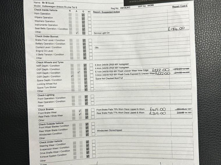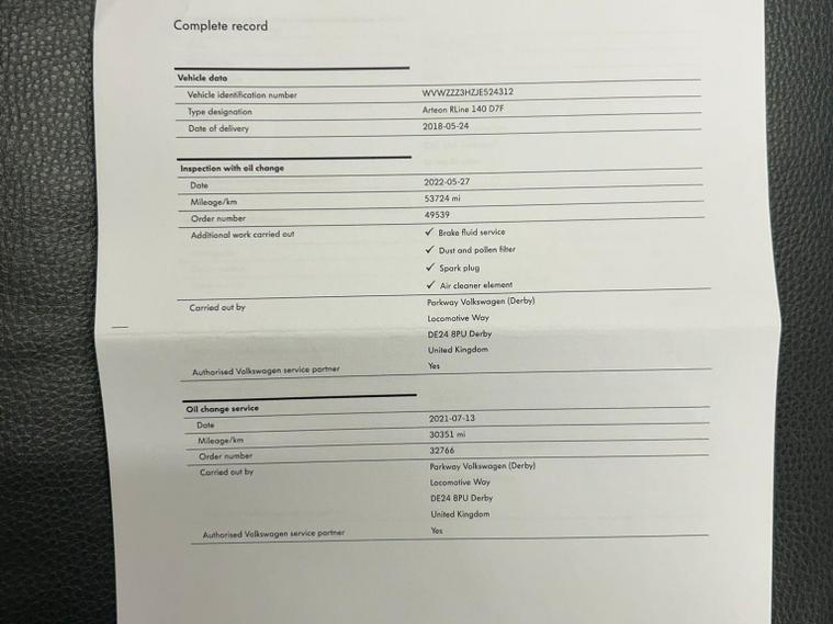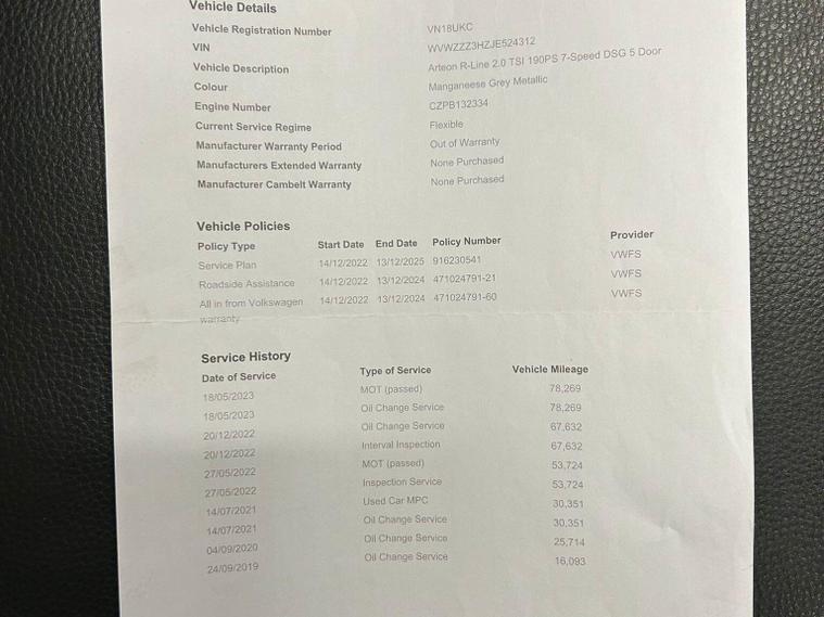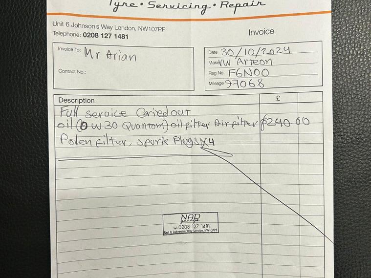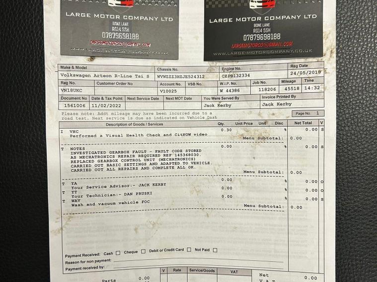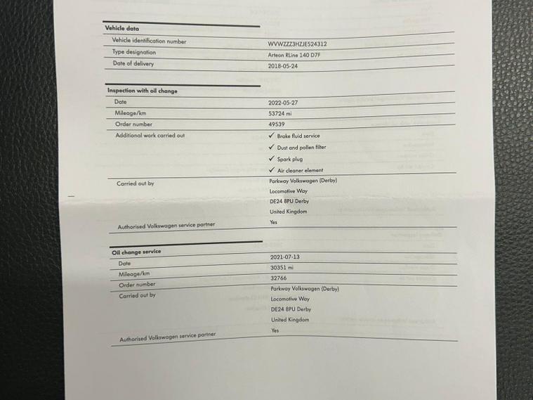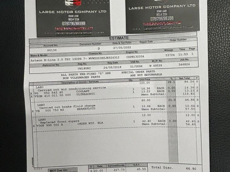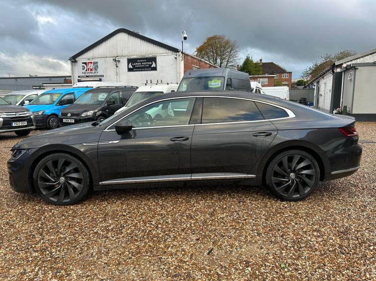 This 2018 Volkswagen Arteon TSI R Line boasts a full service history, with its last service completed at 105, 030 miles, offering you peace of mind. This stylish saloon features a 2.0 litre petrol engine and meets Euro 6 emission standards. It comes with a 3 month warranty and a 12 month MOT will be provided upon purchase. Notable features include a panoramic sunroof, keyless entry with an easy open electric tailgate, and a driver's seat with 14 way adjustment, including heating and memory functions. For your convenience and entertainment, it is equipped with the Discover Navigation Pro touch screen system and an advanced telephone connection.The Arteon R Line offers an impressive 0-62mph acceleration time of just 7.7 seconds, demonstrating its dynamic performance. This acceleration capability is a key indicator of how this vehicle excels compared to others in its class. Furthermore, the generous boot space ensures practicality for all your needs, making it a versatile choice for everyday driving and longer journeys..