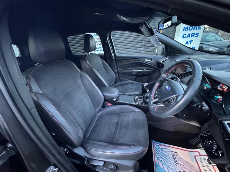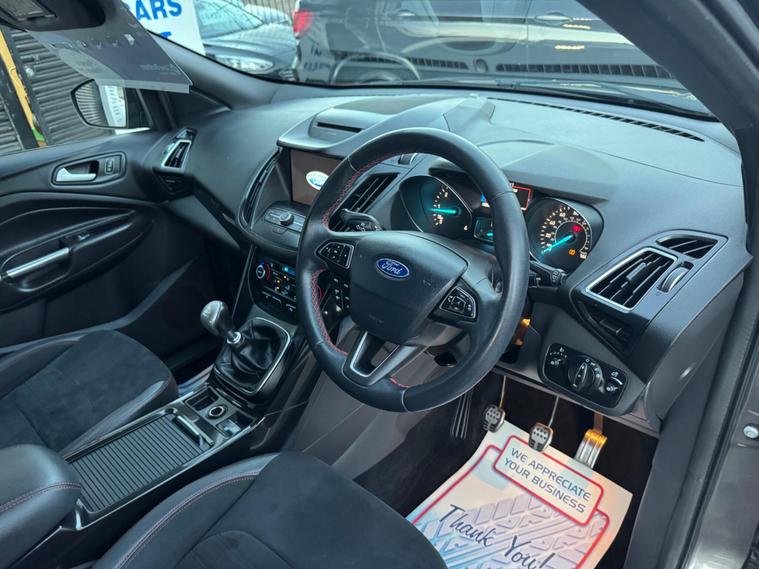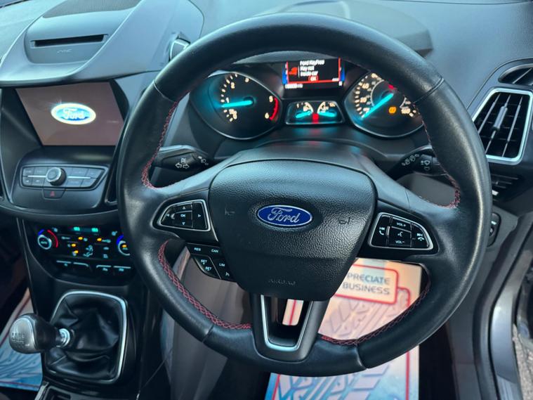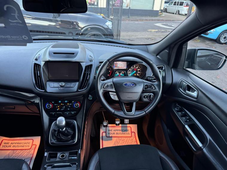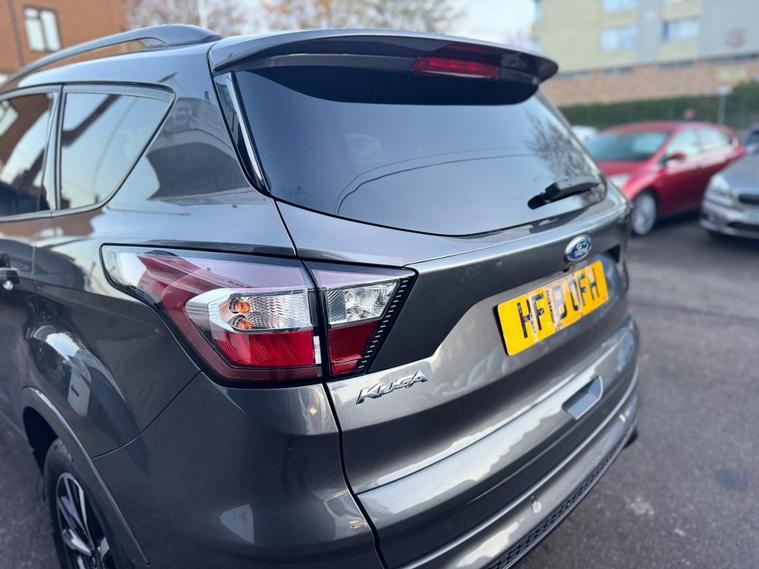 This 2018 Ford Kuga TDCi ST-Line presents a superb ownership proposition, having been meticulously maintained by its single owner from new and boasting a clear vehicle history check. Under the bonnet, you'll find an efficient 1.5 litre diesel engine, compliant with Euro 6 emissions standards, ensuring a responsible drive. This ST-Line model comes equipped with a host of desirable features, including a Premium Ford DAB Navigation System with Ford SYNC3, offering seamless Bluetooth connectivity and integrated parking assistance via a rear view camera. Keyless entry and opening provide effortless access, while the Blind Spot Information System with BLIS further enhances safety and awareness on the road. All of this is presented on striking 19 inch 5x2 spoke alloy wheels.The Ford Kuga TDCi ST-Line stands out with its low CO2 emissions, indicating a more environmentally conscious choice compared to many other vehicles in its class. Furthermore, its placement in a low insurance group means that running costs are kept to a minimum, making it an economical option for a wide range of drivers. These highlights, combined with the vehicle's comprehensive specification and excellent provenance, make this particular Kuga a compelling and practical choice..