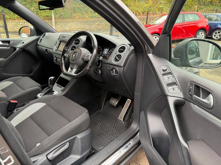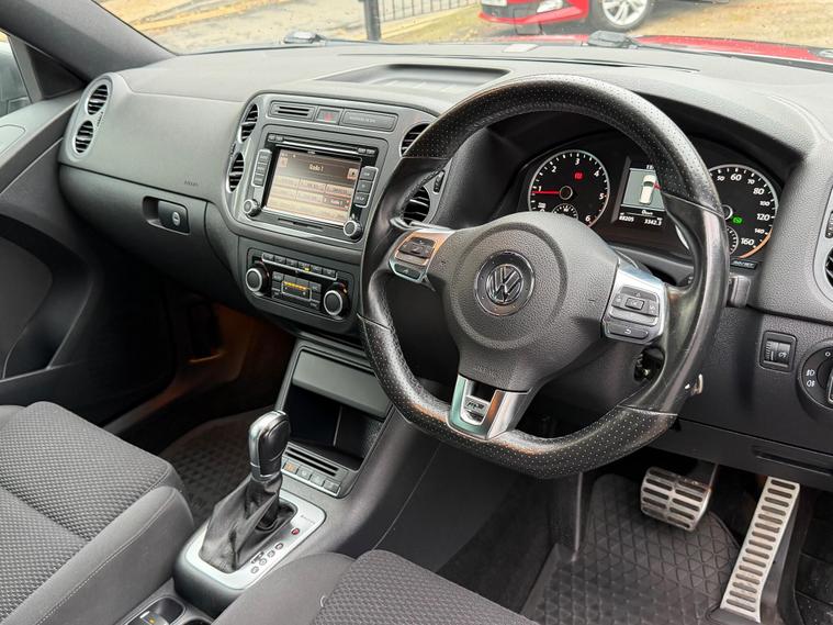 This 2013 Volkswagen Tiguan TDI R-Line presents a compelling proposition with its remarkably low mileage of just 86, 000 miles for its age. This four wheel drive model, equipped with a robust 2.0 litre diesel engine, offers a substantial towing weight of 2200 kg, making it a capable companion for various needs. The R-Line trim enhances its appeal, and you'll find convenience features such as front and rear parking sensors, including Park Assist, to aid with manoeuvring. Automatic dusk sensing headlights, which are Bi-Xenon, ensure optimal visibility in changing light conditions.The performance of this Tiguan is noteworthy, achieving 0-62mph in a brisk 8.9 seconds, demonstrating its responsive acceleration. This figure indicates a more dynamic driving experience compared to many other vehicles in its class. The combination of its four wheel drive system, powerful diesel engine, and the R-Line specification creates a well rounded package that balances capability with a refined driving experience..