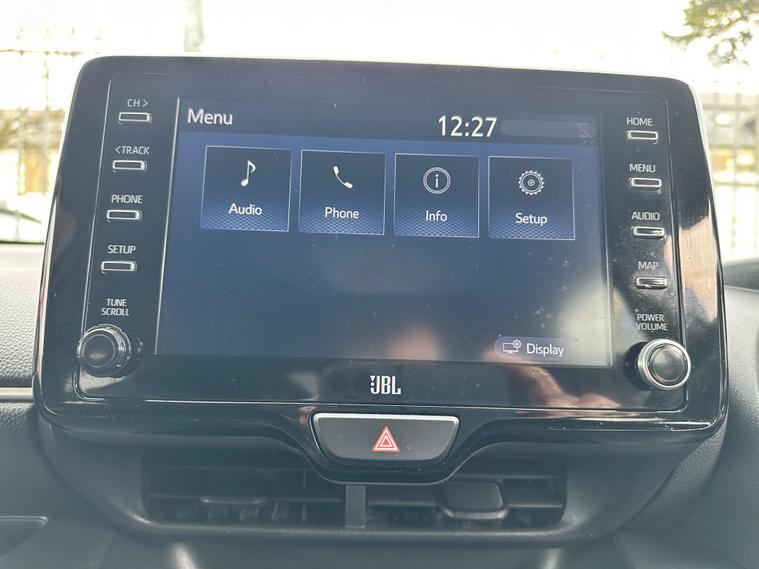 This 2021 Toyota Yaris VVT-h Dynamic boasts a clear vehicle history, offering you peace of mind. This Euro 6 compliant model features a 1.5L Petrol Hybrid engine and comes in the Dynamic trim. Inside, you'll find a host of convenient features including Smart Entry and Push Button Start for effortless access, a Reversing Camera to aid with parking, and Dual Zone Automatic Air Conditioning for personalised comfort. For your entertainment, the JBL Premium Sound System with 8 speakers delivers an immersive audio experience.The Toyota Safety Sense 2 suite, which includes Adaptive Cruise Control, provides an added layer of security and ease on your journeys. This Yaris stands out with an impressive fuel economy of 66 mpg, demonstrating its efficiency compared to similar vehicles. Furthermore, its low CO2 emissions highlight its environmentally conscious design, making it a smart choice for both your wallet and the planet..