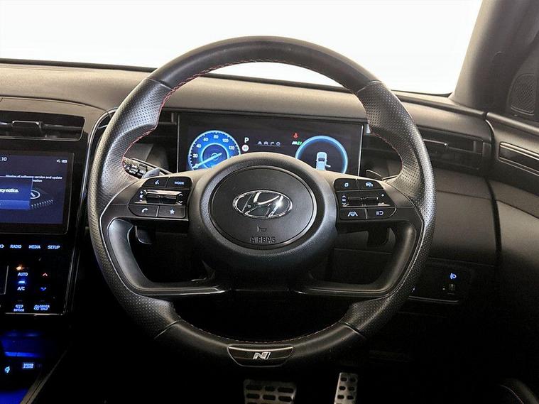 Boasting exceptionally low mileage for its age, this 2022 Hyundai TUCSON h T-GDi N Line presents a remarkable opportunity.The N Line trim enhances its appeal, featuring a responsive 1.6L Petrol Hybrid engine. Stay connected and entertained with Android Auto and Apple CarPlay integration, while the convenience of a wireless phone charging pad keeps your devices powered. Automatic headlights with a dusk sensor ensure optimal visibility, and the comfort of heated front seats makes every journey more enjoyable. This Hyundai TUCSON stands out with its impressive acceleration, reaching 0-62mph in just 8.0 seconds, indicating a more dynamic driving experience compared to similar vehicles. Its low insurance group rating is another advantage, suggesting lower running costs. Furthermore, the generous boot space offers practicality for all your needs, making this TUCSON a well rounded choice for those seeking a stylish, efficient, and feature packed SUV. For peace of mind this vehicle has only had 1 registered owner, comes with service history and has completed a multi point AA dealer's website finance is also available.We are open 7 days a week and have more than 1500 cars to choose from.All our Euro 4 Petrol and Euro 6 Diesel vehicles meet the ULEZ standard.Vehicle specification can be found below. From time to time vehicles have manufacturer recalls notified. Please read our recall policy on our website for further information..