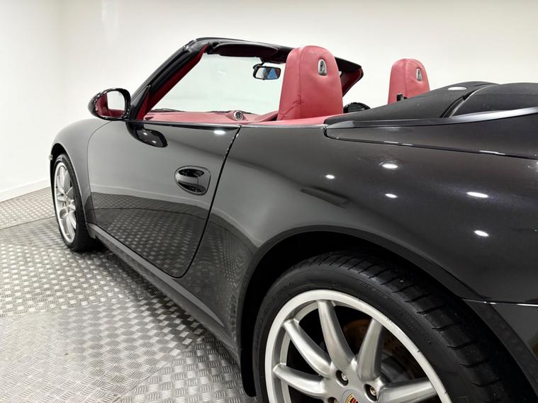 Lovely clean example of the popular Porsche Carrera 2 911 Manual 3.6 convertible in basalt black with red leather trim. This vehicle has been well maintained with a comprehensive service portfolio and 2 keys, just 3 owners in 17 years and a fresh MOT will be completed prior to sale. Features include 19 inch sport alloy wheel upgrade, interior leather package, sport chrono package, bluetooth, navigation, heated front seats, climate control, rear parking sensors, retractable spoiler, xenon headlights, black, electric roof operation with heated glass rear screen and more. Car is presented inside our heated showroom here in Lincoln, for mor information or to request a walk round video please call 01522972873..
