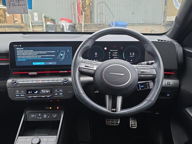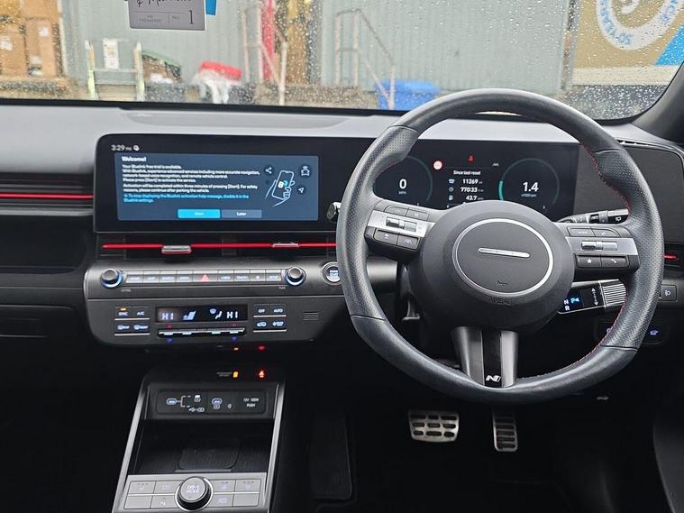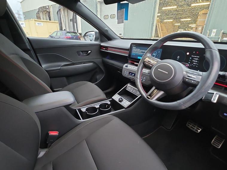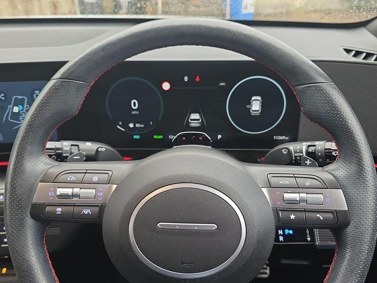 This 2023 Hyundai Kona Hybrid N Line presents an exceptional ownership proposition with its remarkably low mileage of just 11178 miles, a testament to its careful single owner. This Euro 6 compliant model boasts a 1.6L Petrol Hybrid engine, offering an impressive fuel economy of 60 mpg. Its provenance is further strengthened by a full dealership service history, with the last service completed on 2025 10 21 at 11125 miles, and it benefits from a substantial 34 months of remaining warranty for your peace of mind.The KONA N Line is designed to stand out, and this particular example highlights its efficiency and affordability. Its low CO2 emissions and placement in a low insurance group indicate that running costs are kept to a minimum, making it a sensible choice for many drivers. These factors, combined with its excellent fuel economy, demonstrate how this Hyundai KONA offers a more economical and cost effective driving experience compared to other vehicles in its class..