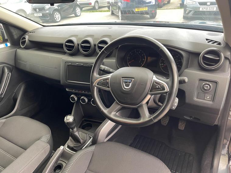 HPI CLEAR. 6 MONTHS WARRANTY. FULL SERVICE HISTORY. MOT. AIR CONDITIONING. TOUCH SCREEN SAT NAV. BLUETOOTH CONNECTION. USB SOCKETS. ALLOY WHEELS. BLUETOOTH CONNECTION. CRUISE CONTROL. DAB RADIO. ELECTRIC WINDOWS AND MIRRORS. PARKING CAMERA. MORE DETAILS AT dealer's website 2019 Dacia Duster TCe Prestige is a great find, boasting a clear vehicle history check for your peace of mind. This stylish SUV is powered by an efficient 1.3L Petrol Engine, meeting Euro 6 emission standards. The Prestige trim level ensures you're well equipped, featuring convenient Bluetooth connectivity for your devices, a comprehensive Multiview Camera system with 360 degree parking assistance, a rear parking camera, and rear parking sensors to make manoeuvring simple. Keyless entry adds to the ease of use.The Dacia Duster TCe Prestige stands out with its low CO2 emissions, making it an environmentally conscious choice. Furthermore, its low insurance group rating means that running costs are kept to a minimum, offering excellent value compared to many other vehicles in its class. This combination of practical features and cost effective ownership makes this Duster a compelling option for everyday driving..