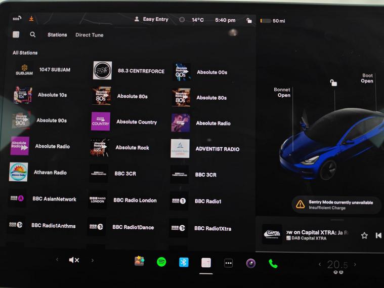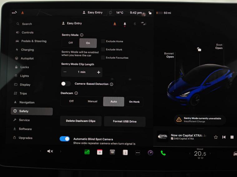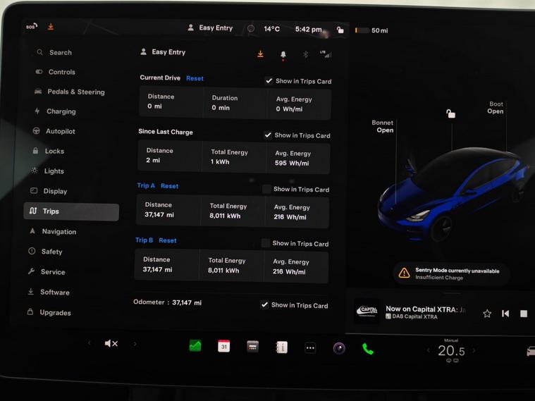 This 2023 Tesla Model 3 Long Range presents a superb ownership opportunity, having had only one owner from new with a clear vehicle history check. As an electric vehicle, it boasts a substantial 78 kWh battery offering a maximum range of 394 miles, ensuring fewer stops on longer journeys. Charging is convenient, taking approximately 12 hours at home using a 7kW charger, while rapid public charging can replenish the battery from empty to 80% in just 25 minutes. Notable features include a dual wireless phone charger, pre conditioning for comfort, blind spot warning for enhanced safety, unlock on park functionality, and speed assist.The Long Range variant of the Model 3 is designed to impress, and this particular example stands out with its impressive 394 mile maximum range, a key advantage over many other electric vehicles. You'll also appreciate the generous boot space, providing ample room for luggage or shopping. These highlights demonstrate the superior capability and practicality of this Tesla Model 3, making it an excellent choice for those seeking an advanced and efficient electric car..