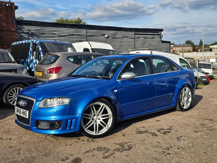 AUDI RS4 4.2 V8 QUATTRO 420 BHP MANUAL2007 ( 56 REG)4.2 PETROL V82 KEYS78, 000 MILESFULL SERVICE HISTORYNEW CLUCTH FITTED KW COILOVERS CARBON CLEAN MOT TILL 21/08/2026SPECIFICATIONSPRINT BLUE4 DOOR SALOON 6 SPEED MANUAL QUATTRO 19'' ALLOYSWING BACK SEATS PUSH BUTTON STARTFLAT BOTTOMED STEERINGBOSE SYSTEMCARBON INLAYSSUNROOF DUAL CLIMATECRUISE CONTROLPARKING SENSORSHEATED SEATS-COOLING SEATS SAT-NAVTRIP COMPUTERACFOG LIGHTSABSCD PLAYERCENTRAL LOCKINGPOWER STEERINGLARGE BOOT FOR STORAGE SPACECOLOUR CODED BUMPERSHPI CLEARP/X WELCOMENATIONWIDE DELIVERY AVAILABLEMAJOR DEBIT/CREDIT CARDS ACCEPTEDWARRANTY AVAILABLEFINANCE AVAILABLE open 7 days a week 10 am till 7 pmPlease call for further information if required on 01215402893.