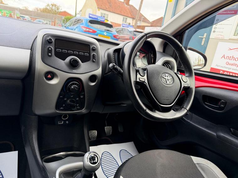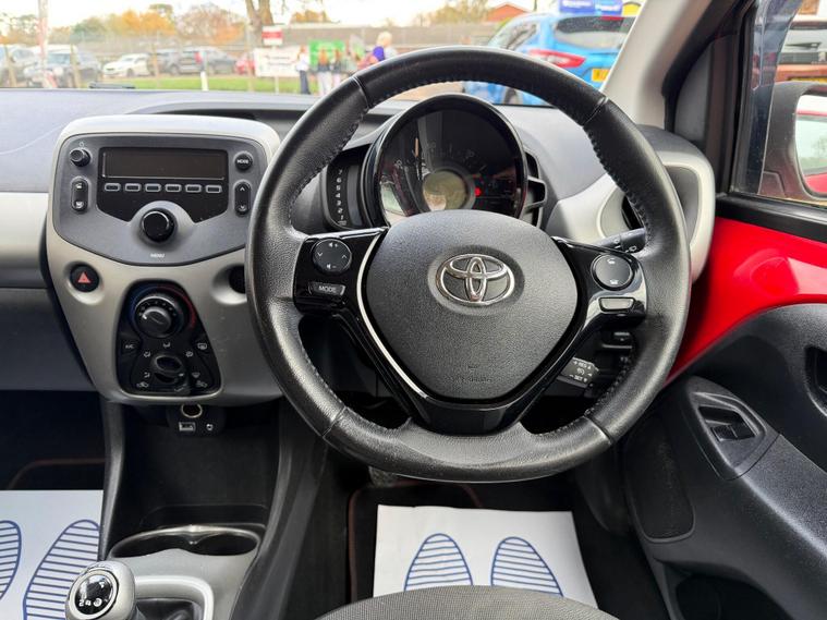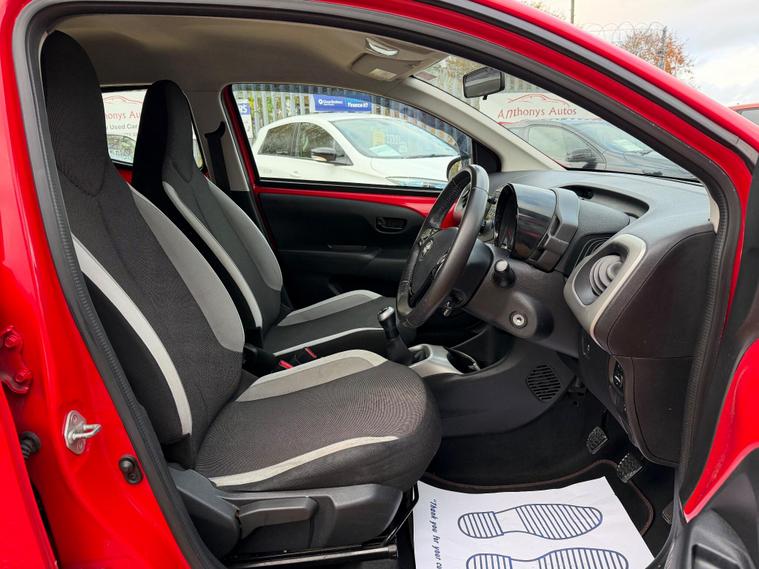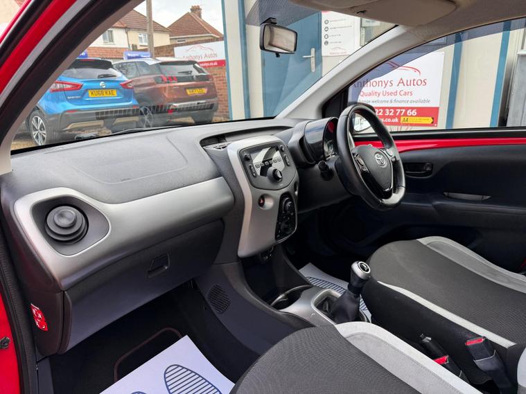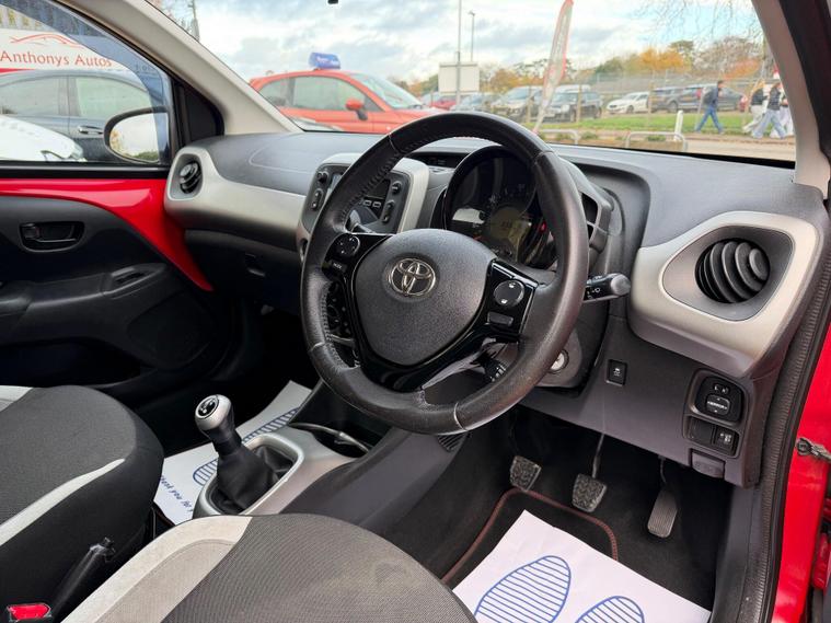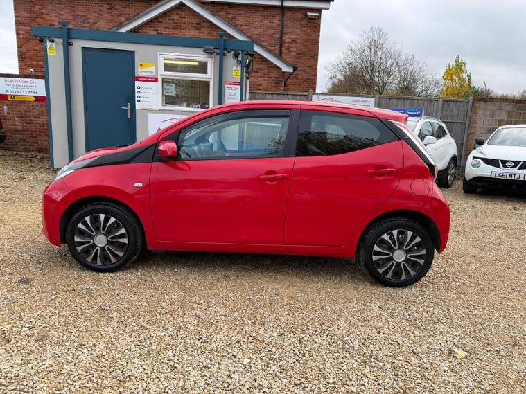 2015 Toyota AYGO 1.0 VVT-i x-play Euro 5 5dr Euro 5 in Red. Ideal frist car! 85k miles with a full Service History. Low insurance and just £20 per year road tax. Key features include; steering wheel mounted controls, Bluetooth phone Kit, climate control, USB connectivity and remote central locking. A well loved and cared for example. Drives very well. HPI CLEAR. 3 months warranty included and a pre-delivery inspection. 12 Months MOT with all Advisories now replaced. We can also arrange a competitive low rate 0% Deposit Finance or why not part exchange your old car? All Major Cards Accepted. Call today to view and drive!.