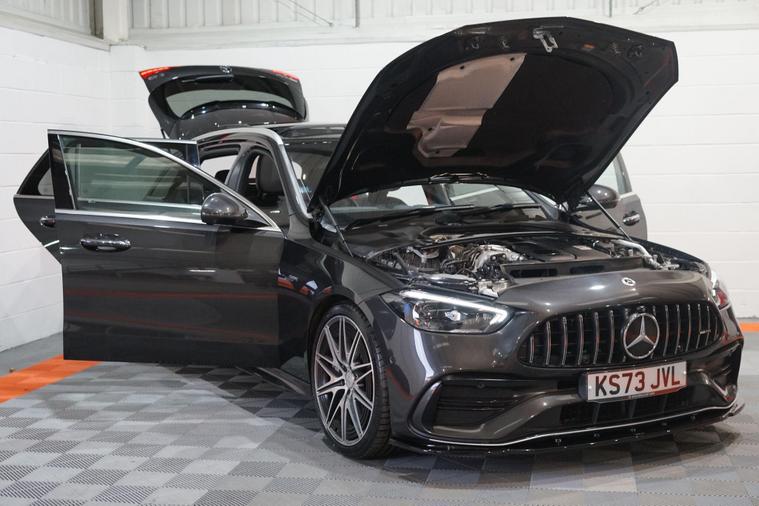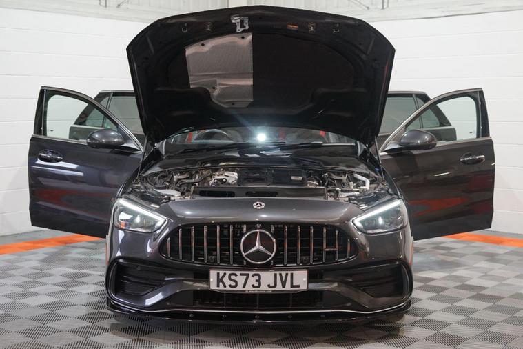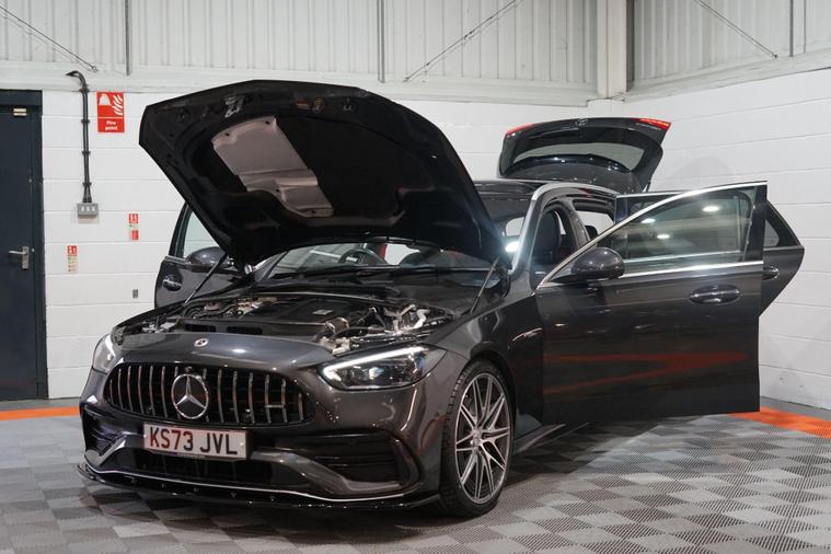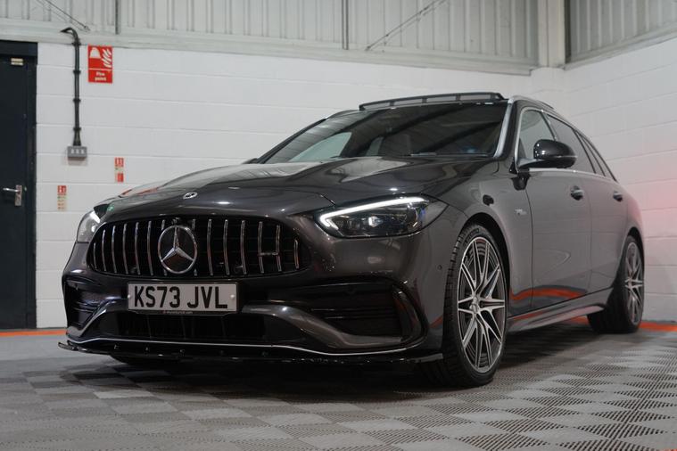 Introducing the Mercedes-Benz C43 2.0 MHEV AMG Premium Plus 4MATIC, a car that redefines performance luxury.Sculpted with AMG’s unmistakable DNA, this stunning 5-door estate blends everyday practicality with pure driving excitement — the perfect fusion of power, style, and technology.Under the bonnet, the advanced 2.0-litre mild-hybrid AMG engine delivers a breath taking 408hp, harnessed through the 9G-Tronic+ automatic gearbox and intelligent 4MATIC all-wheel drive system. Acceleration is instant, seamless, and utterly addictive, ensuring every journey is as dynamic as the last.From every angle, the C43 exudes athletic confidence — AMG-specific body styling, a bold front grille, 19-inch AMG alloys, and striking Multibeam LED headlights make an impression that lingers. Step inside to discover craftsmanship that balances sport and sophistication: AMG sports seats, Nappa leather upholstery, and ambient lighting create a space that feels both indulgent and purposeful.Technology takes centre stage with the 12.3-inch digital cockpit and 11.9-inch portrait infotainment display featuring MBUX with voice control, Apple CarPlay, and Android Auto. The Premium Plus package adds an extra layer of refinement — Head-Up Display, Burmester 3D Surround Sound, panoramic glass sunroof, and keyless entry and start all come as standard.Safety and control are effortless, thanks to adaptive cruise control, lane keeping assist, parking sensors with reversing camera, and AMG Ride Control suspension, adjusting to the road for comfort or precision at your command.The Mercedes-AMG C43 Premium Plus — where thrilling performance meets everyday elegance. It’s more than a car; it’s your statement on the road..