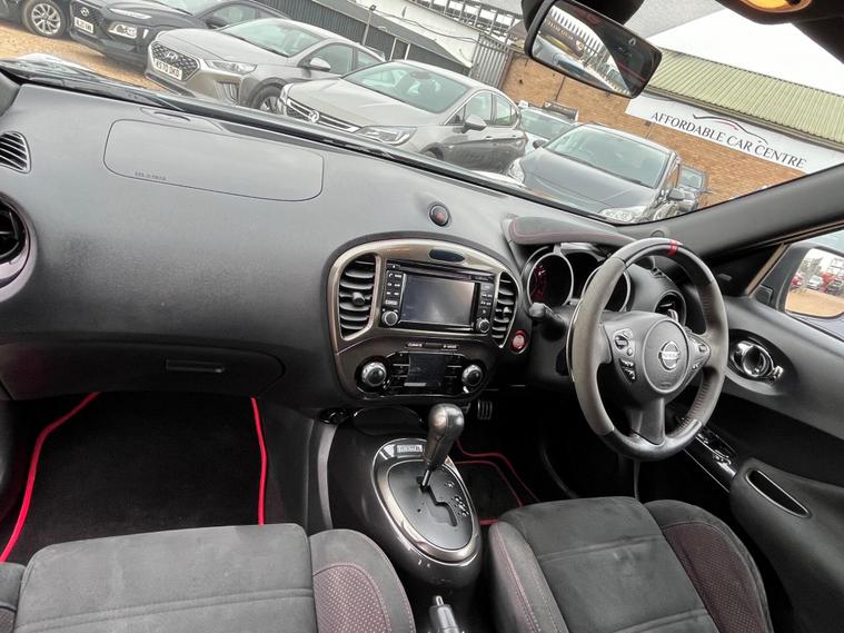 Boasting exceptionally low mileage for its age, this 2017 Nissan Juke DIG-T Nismo RS is a remarkable find. This four wheel drive model, powered by a 1.6 litre petrol engine, meets Euro 6 emissions standards. It comes with a 3 month warranty for your peace of mind, and its MOT is valid until February 2026. The vehicle was last serviced on 13 October 2025, and its current mileage stands at a very low 38, 000 miles.The Nismo RS trim level offers a host of desirable features, including paddle shift steering wheel controls for an engaging driving experience, and intelligent key with push button start and keyless entry for ultimate convenience. Stay connected on the go with Bluetooth integration for your telephone, and manoeuvre with ease thanks to the colour reversing camera and rear parking assistance. For added comfort, the front seats are heated. This Juke also benefits from a low insurance group, making it an economical choice. Its impressive acceleration of 0 to 62mph in just 8.0 seconds highlights its performance capabilities, setting it apart from many similar vehicles..