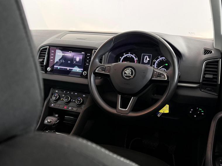 Our Skoda Karoq is finished in Silver. With a great specification, our Karoq includes features such as 17 Inch Alloy Wheels, Electric and Heated Mirrors, Electric Folding Mirrors, Front and Rear Electric Windows, Roof Rails, Air Conditioning, Apple Carplay, Bluetooth, DAB Radio, Multi-Function Steering Wheel, Paddle Shift, Parking Sensors, Speed Limiter, USB, Black Cloth Trim, Central Armrest, Cup Holders, Folding Rear Seats, Rear Central Armrest, ISOFIX, LED Tailights, Remote Central Locking. All Car Planet stock is carefully picked, so you can buy from us with confidence. Each vehicle undergoes a thorough 150-point check at our preparation hub by our qualified specialists. Every car purchased comes with a free 12-month AA breakdown cover plan option to extend to 60 months warranty. You can reserve any of our cars online, with a refundable £99 reservation at dealer's website We also offer the option to purchase online and you can have your new car delivered to your door step from £199 in as little as 48 hours. Alternatively, come and visit our Barnet site where our friendly Car Gurus will assist you every step of the way. If you prefer a virtual appointment, we offer same-day video-viewings. We offer a range of flexible finance options from our panel of lenders. Part-exchanges are available upon request. Simply select, secure and drive..