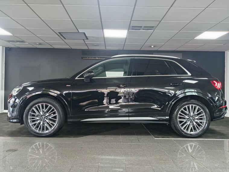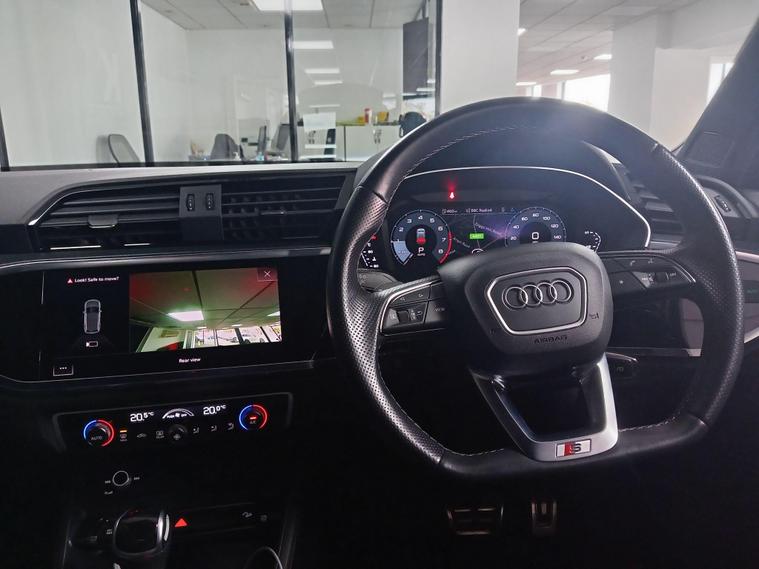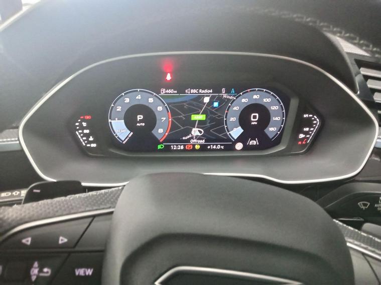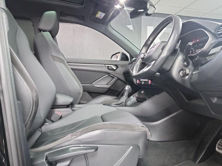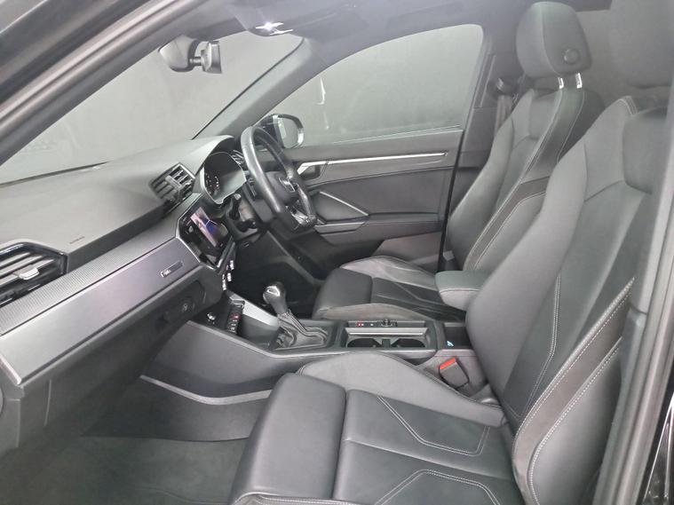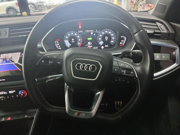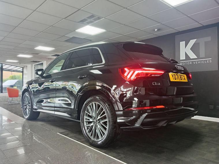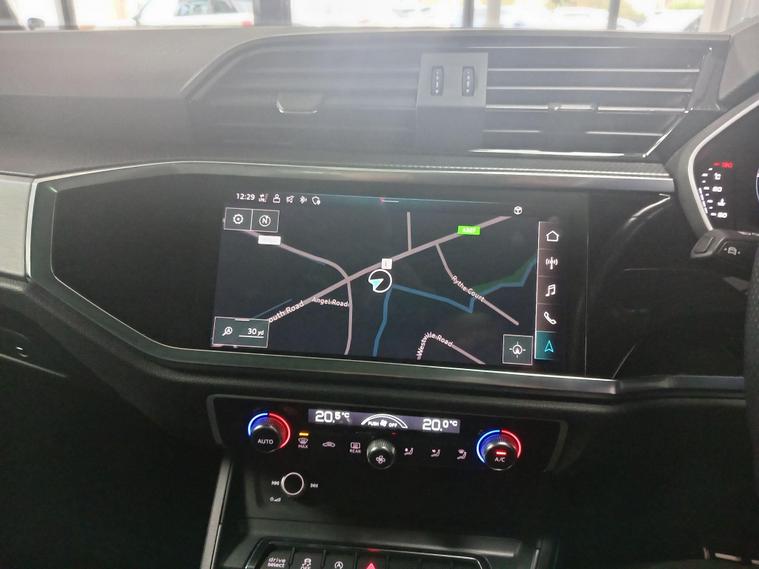 This 2021 Audi Q3 TFSI S line boasts exceptionally low mileage for its age, having covered just 22, 700 miles, and comes with a clear vehicle history check and a full service history. This Euro 6 compliant 1.5 litre petrol model is presented in the sought after S line trim, featuring a panoramic glass sunroof that opens for an enhanced driving experience. Inside, you'll find twin leather sport seats in black with stylish rock grey stitching, complemented by a flat bottomed, three spoke leather trimmed multi function sport steering wheel complete with gear shift paddles. The exterior is enhanced by 19 inch alloy wheels in a contrasting grey diamond cut finish, and the vehicle is equipped with LED headlights, daytime running lights, and dynamic rear indicators.The Q3 TFSI S line offers a responsive drive, accelerating from 0 to 62 miles per hour in 9.4 seconds, demonstrating its performance capabilities. This particular example benefits from a 6 month warranty for your peace of mind, and its MOT is valid until October 2026, indicating its excellent roadworthiness. These factors, combined with its comprehensive features and low mileage, position this Audi Q3 as a superior choice compared to other vehicles of its kind on the market..
