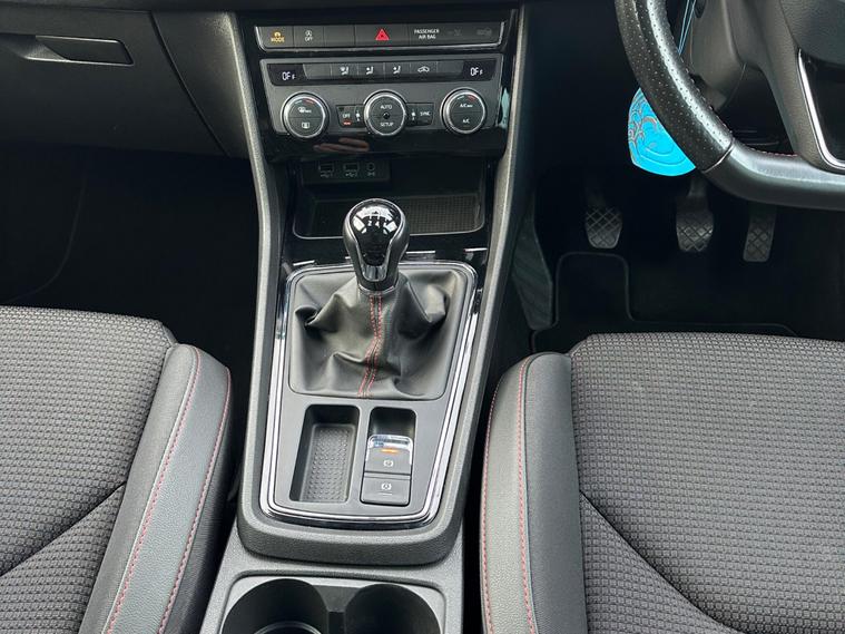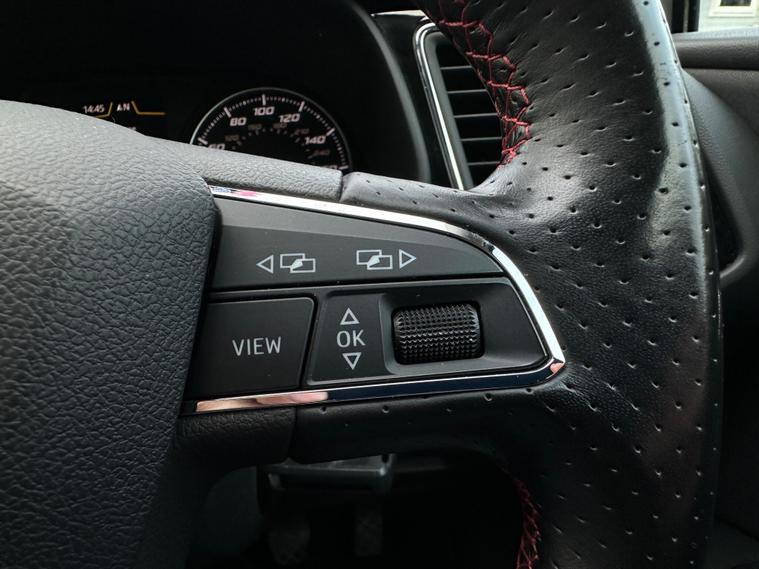 - Steering Wheel - Flat-Bottomed Perforated Leather with Red Stitching and FR Logo