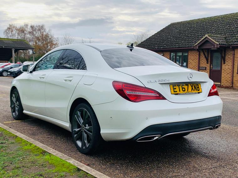 02 KEYS , 02 FORMER KEEPERS , SERVICE HISTORY INCLUDES 6 SERVICE INVOICES , This 2017 Mercedes-Benz CLA220d Sport is presented with a clear vehicle history check, offering you peace of mind. This stylish CLA features a 2.1L Euro 6 diesel engine and is presented in the desirable Sport trim. Notable features include Headlamp Assist for automatic activation in dark conditions, and Parking Pilot with front and rear sensors to aid manoeuvring. Inside, you will find THERMOTRONIC luxury automatic climate control for a comfortable cabin temperature, and a Bluetooth interface for hands-free calls and audio streaming. This Mercedes-Benz CLA220d Sport stands out with its impressive fuel economy, achieving a remarkable 69 mpg, which indicates it is more economical than many similar vehicles. Furthermore, its low insurance group and low CO2 emissions highlight its cost effectiveness and environmental consideration compared to other cars in its class..