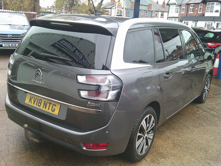 serviced at 21k, 32k, 44k, 55k, This 2018 Citroen Grand C4 Picasso BlueHDi Flair offers exceptional practicality and comfort for families. As a Euro 6 compliant model, it features a 1.6 litre diesel engine known for its efficiency, achieving an impressive 71 miles per gallon. This 7 seater variant, in Flair trim, comes equipped with automatic digital dual zone climate control, ensuring comfort for all occupants, and additional air conditioning for the third row, including independent rear controls. For convenience and safety, it boasts Bluetooth handsfree and media streaming with a USB socket, front parking sensors for easier manoeuvring, and blind spot detection to enhance awareness on the road.The low CO2 emissions of this Grand C4 Picasso highlight its environmental consideration, making it a sensible choice. The combination of its fuel economy and low emissions means it is more economical to run than many similar vehicles. The inclusion of features like blind spot detection and front parking sensors further sets it apart, offering advanced driver assistance that contributes to a safer and more relaxed driving experience for everyone on board.1111mo.