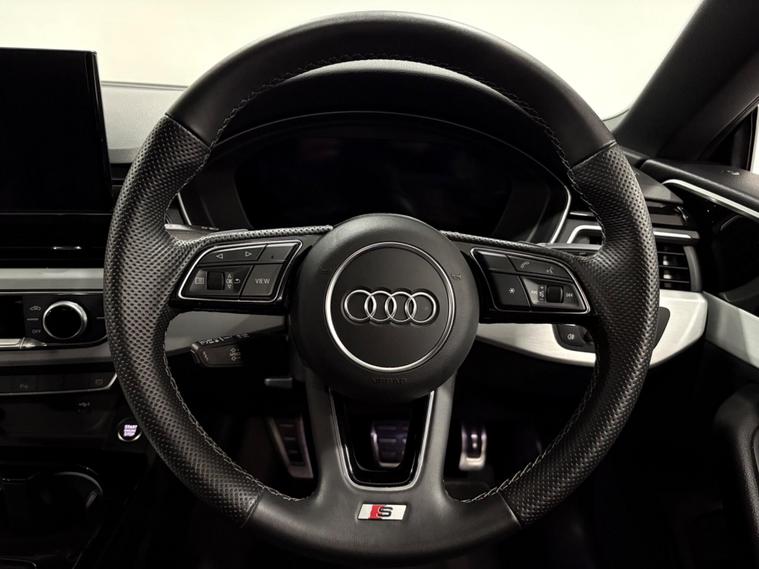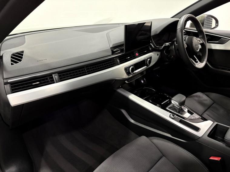 This Audi A5 TFSI has a full dealership service history having been serviced at 8-16k miles and has only had one owner from new. Finished in stunning District Green with black part leather interior, supplied with 2 keys and will have a fresh MOT as part of our internal preparation. The S line trim enhances its appeal, featuring the advanced Parking System Plus with front and rear sensors, complemented by a rear view camera for effortless manoeuvring, 19 inch alloy wheels and Audi virtual cockpit.Further enhancing your driving experience, this Audi A5 is equipped with striking Audi Matrix LED headlights and dynamic LED rear indicators, ensuring excellent visibility. Inside, you will appreciate the Deluxe 3-Zone Electronic Climate Control, allowing personalised comfort for all occupants. Connectivity is seamless thanks to the Audi Smartphone Interface, providing access to both Android Auto and Apple CarPlay. The generous boot space offers practicality for everyday needs and longer journeys, making this A5 a superior choice for those seeking performance, technology, and convenience..
