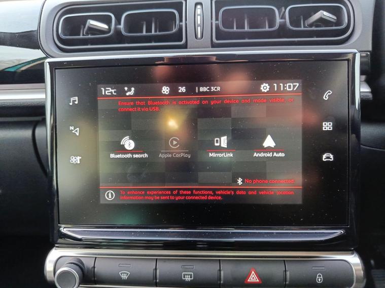 This 2021 Citroen C3 Shine is a standout choice, boasting exceptionally low mileage of just 11126 miles for its age and having had only one owner from new. This Euro 6 compliant 1.2 litre petrol model comes with a full service history and a clear vehicle history check, ensuring peace of mind. You'll also benefit from a 12 month warranty and a 12 month MOT provided on purchase. Inside, enjoy the comfort of automatic air conditioning with climate control, and stay connected with the Citroen Connect DAB radio featuring 6 speakers, Android Auto, Apple CarPlay, and Bluetooth. The car is also equipped with LED headlights and a visibility pack for enhanced driving awareness, along with rear parking sensors for added convenience.With an impressive fuel economy of 54 mpg, this Citroen C3 Shine offers excellent running costs, making it a more economical option compared to similar vehicles. The combination of its low mileage, single owner history, and comprehensive service record clearly demonstrates its careful upkeep and superior condition. This well appointed model provides a comfortable and technologically advanced driving experience, perfect for everyday journeys..