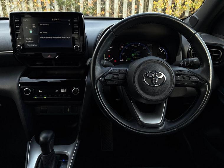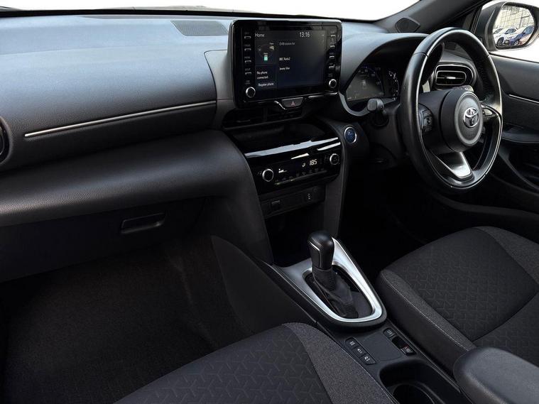 This 2021 Toyota Yaris Cross VVT-h Design is a Toyota manufacturer approved vehicle, boasting a full dealership service history and a recent service completed on 2025-03-10 at 18185 miles, with its MOT valid until September 2026. This Euro 6 compliant 1.5L petrol hybrid is presented with a low mileage of just 21499 miles for its age and comes with a 12 month warranty for your peace of mind. Key features include Smart Entry and Push Button Start for effortless access, Intelligent Adaptive Cruise Control for relaxed journeys, and a Reversing Camera to aid parking. Inside, you'll find the 8in Toyota Touch 2 Multimedia System with Apple CarPlay and Android Auto integration, alongside Bluetooth Connectivity for seamless device pairing.The Yaris Cross Design offers exceptional efficiency, highlighted by an impressive fuel economy of 63 mpg, demonstrating how it is more economical than many other vehicles. Its low CO2 emissions and low insurance group further indicate that this Yaris Cross is a more cost effective choice to own and run compared to similar cars..