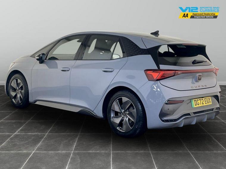 This 2022 CUPRA Born V1 is a superb example, having been owned by just one person since new. As an electric vehicle, it offers a smooth and quiet driving experience. This particular model boasts a 62 kWh battery, providing an impressive maximum range of 265 miles when new. Charging is convenient, with a full charge at home taking approximately 9 hours and 30 minutes using a 7kW charger, and a rapid charge to 80% achievable in just 37 minutes at a public charging station. The CUPRA Born V1 comes equipped with a range of desirable features to enhance your journey. These include full LED headlights with a welcome home and adverse weather function, a heated leather wrapped multifunction steering wheel, and advanced parking assistance with both front and rear sensors. For added convenience and safety, it features Pilot M, which includes adaptive cruise control and a rear parking camera.For peace of mind this vehicle has only had 1 registered owner and has completed a multi point AA dealer's website finance is also available.We are open 7 days a week and have more than 1500 cars to choose from.All our Euro 4 Petrol and Euro 6 Diesel vehicles meet the ULEZ standard.Vehicle specification can be found below. From time to time vehicles have manufacturer recalls notified. Please read our recall policy on our website for further information. Please be advised that the advertised electric vehicle (EV) listings may experience battery degradation over time, resulting in reduced performance and range compared to the original specifications. Factors such as usage patterns, environmental conditions, and charging practices can contribute to this degradation. While we strive to provide accurate information, the actual battery health and performance of each EV may vary. Customers are encouraged to conduct thorough research and consider the potential impact of battery degradation before making a purchase decision. We recommend consulting with a qualified technician or conducting a battery health inspection for further assessment..