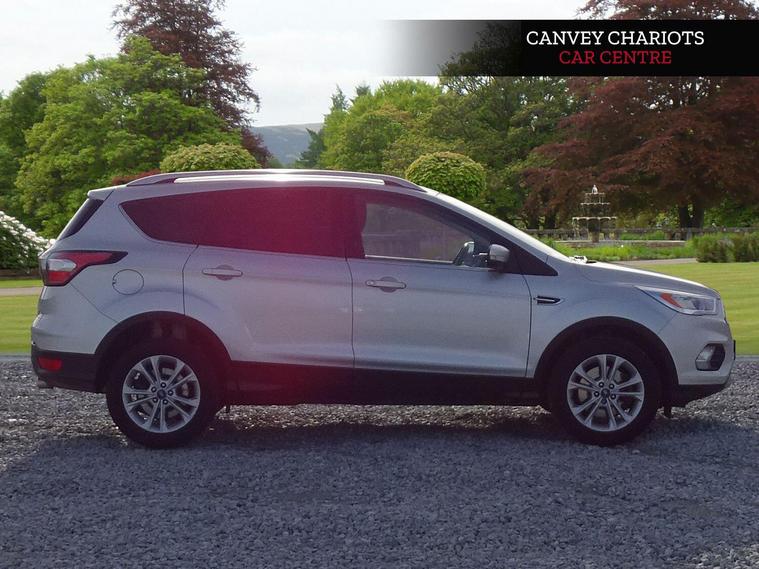 Discover this 2017 Ford Kuga TDCi Titanium, a well presented example ready for its next owner. This stylish SUV is powered by a 2.0 litre diesel engine, meeting Euro 6 emissions standards. It boasts a Titanium trim level, offering a refined driving experience. Keyless opening and rear parking sensors provide convenience and ease of use, while the DEATC dual zone electronic automatic temperature control ensures comfort for all occupants. Automatic halogen headlights with LED daytime running lights adapt to changing conditions, and the SYNC 3 system with an 8 inch colour touchscreen offers seamless connectivity via Bluetooth, voice control, and USB, complete with emergency assistance.This Ford Kuga stands out with its impressive fuel economy, achieving up to 60 miles per gallon, which indicates it is more economical than many similar vehicles. Furthermore, its low insurance group rating suggests that running costs will be lower compared to other cars in its class. The vehicle also benefits from low CO2 emissions, highlighting its efficiency and environmental consideration..