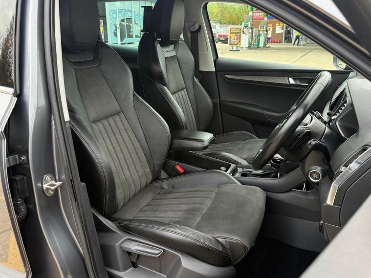 Boasting an incredibly low mileage of just 222 miles, this 2022 Skoda Karoq TSI SE L represents a truly exceptional find. This one owner vehicle, finished in the popular SE L trim, is powered by an efficient 1.5 litre Euro 6 compliant petrol engine. It comes equipped with a suite of advanced features designed to enhance your driving experience, including a rear view camera with parking assistance, LED headlights with automatic control, and front and rear parking sensors. Inside, you'll appreciate the comfort and convenience of a 2 spoke leather heated multi-function steering wheel complete with DSG paddles.This Skoda Karoq excels in several key areas, demonstrating its superiority over other vehicles in its class. Its impressive fuel economy of 46 mpg means fewer trips to the petrol station, while its low CO2 emissions contribute to a more environmentally friendly drive. The generous boot space offers ample room for all your luggage and shopping needs. Furthermore, its brisk acceleration, achieving 0-60mph in just 8.7 seconds, ensures a responsive and engaging performance on the road..