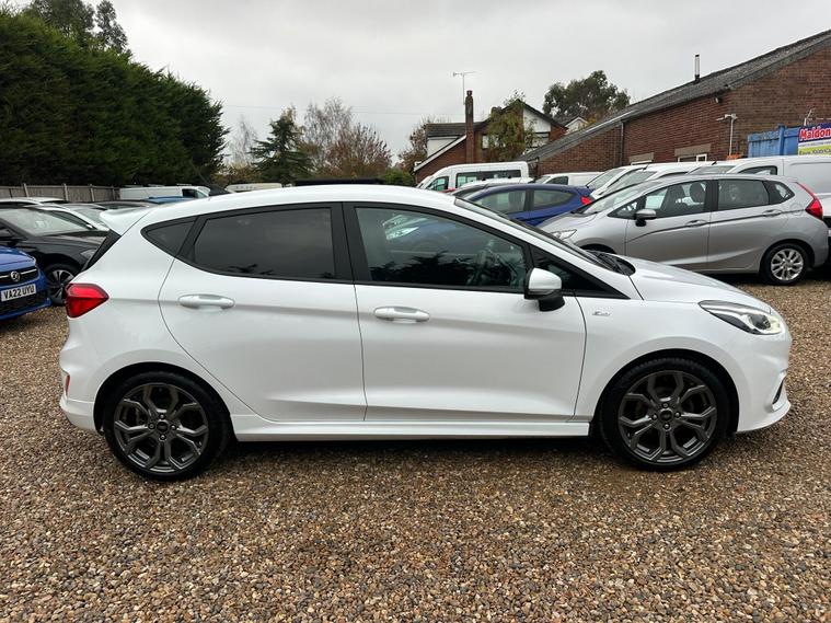 Boasting a full service history and a clear vehicle history check, this 2020 Ford Fiesta T ST Line presents a well maintained example. Powered by a 1.0L petrol engine, this Euro 6 compliant model offers an efficient driving experience with low CO2 emissions. The vehicle comes with a 6 month warranty and a 12 month MOT provided on purchase, ensuring peace of mind. Its last service was completed at 63, 000 miles on 7th November 2025.This Ford Fiesta T ST Line is equipped with automatic on-off headlights and manual air conditioning for your comfort. Stay connected and entertained with Ford SYNC featuring a touchscreen, DAB radio, and seamless integration for Apple CarPlay and Android Auto. The NCAP Pack further enhances safety. Accelerating from 0 to 62mph in just 10.0 seconds, this model demonstrates a responsive performance that sets it apart from many other vehicles in its class.12 MONTHS AA BREAKDOWN COVER, EXPERIAN AUTOCHECK CLEAR, ALL PREV MOTs AVAIL We are located in OAK CORNER, MALDON ROAD, Maldon, Essex post code CM9 6TF Open 7 days a week, All major credit/debit cards accepted for deposits only, Finance available, Please visit our website dealer's website to view our latest stock, Part Exchange Welcome - Test Drives Welcome - We Offer a Transparent, Friendly, 'NO PRESSURE' Service , Read Our Reviews, All our vehicles come with 6 months nationwide parts and labour warranty, MALDON CARS AND VANS LTD are authorised and regulated by the Financial Conduct Authority under FRN Reference number 927720. Finance is Subject to status. MALDON CARS AND VANS LTD is authorised as a CREDIT BROKER and NOT A LENDER. This means we work with a number of carefully selected credit providers who may be able to offer you finance for your purchase.