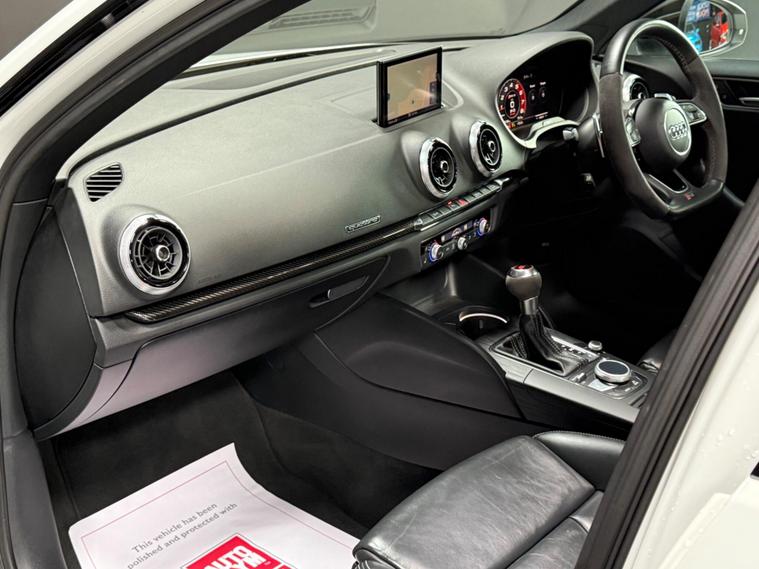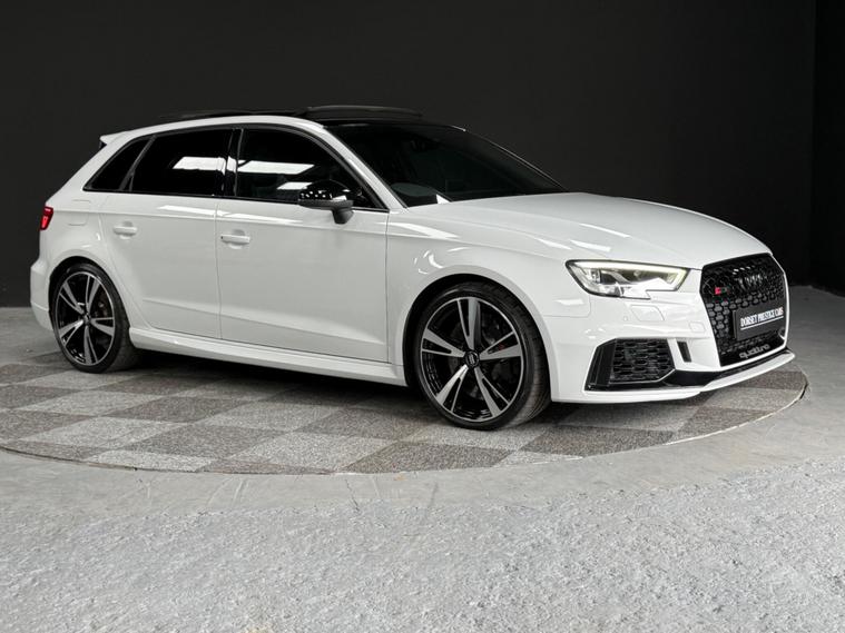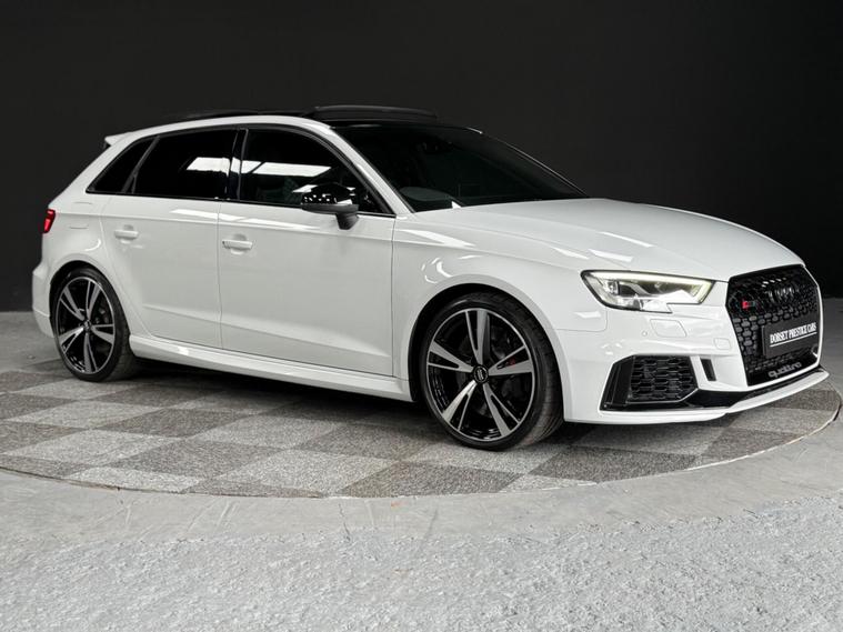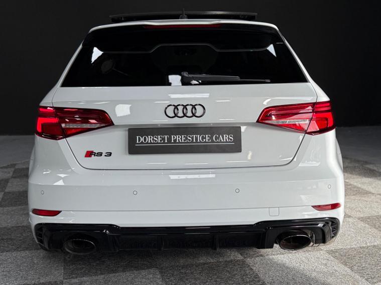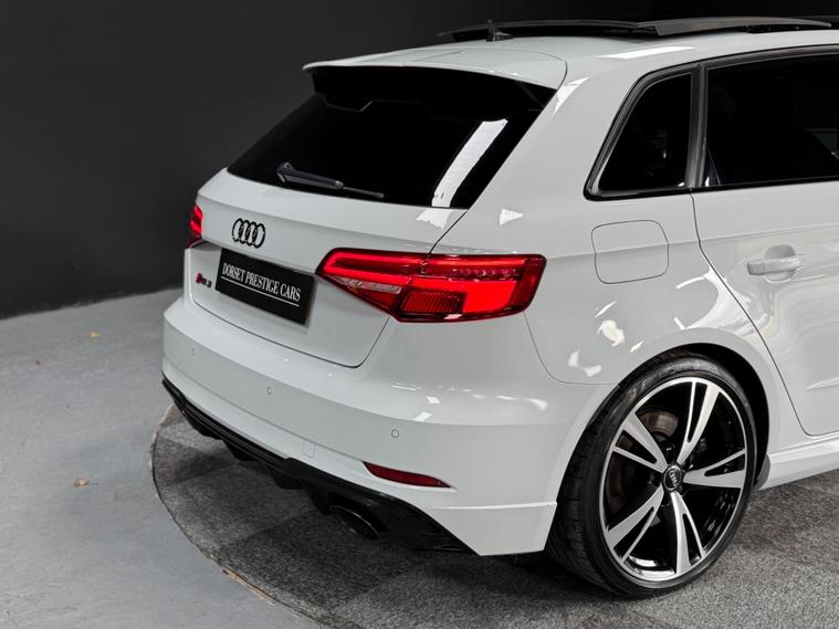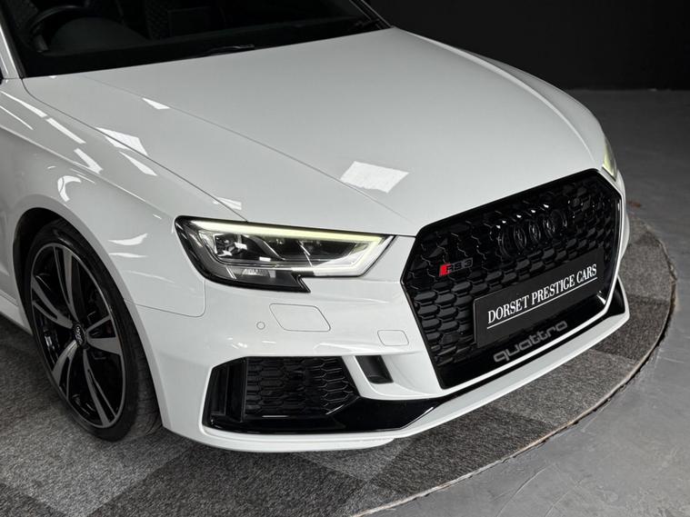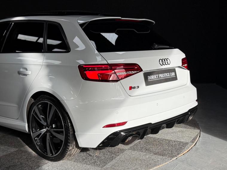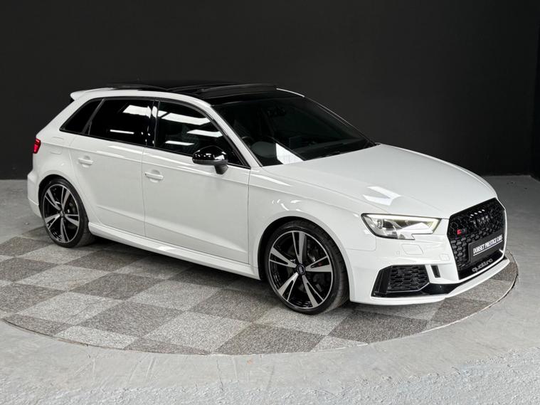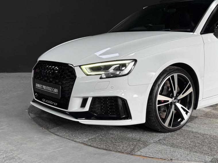 Dorset Prestige Cars are proud to present to you this Lovely Example 2019 Audi RS3 2.5 TFSI Audi Sport Edition Sportback S Tronic quattro. Only 2 Owner From new backed up with Full Service History. Finished in Glacier white, metallic with Black Leather Heated Interior, 19inch Diamond Cut RS Alloy Wheels with PZero Tyres, Black Callipers, Front & Rear Parking sensors, Privacy pack, Panoramic Glass Sliding Roof, Daytime running lights, Carbon Interior Pack, satellite navigation, Alcantara flat bottom multifunction steering wheel, Alcantara gear lever, lumber support Seats, automatic Cadillacs, virtual cockpit, DAB radio, heated seats, cruise control, black roof lining, drivers centre armrest with storage, iso fix seats, heated electric adjust mirrors. Service History = 14/8/19@19 Pre delivery Inspection Audi Main dealer, 3/10/20@3134 Audi Main dealer, 25/8/21@7549 Audi Main Dealer , 31/8/23@17886 Specialist, 27/8/24@21472 Specialist, 6/10/25@28176 Silver service, 4x new tyres, rear brake pads This vehicle is HPI clear, comes with original book pack with manuals. This is a very clean nice low mileage example.Nationwide Delivery Trailered or Driven you Choose, 6 Months Warranty+ Extended warranties available 12 Months AA Breakdown....This vehicle comes with 6 months Warranty for full peace of mind (up to 36 month extension available), 3 or 5 year ceramic coating available, train station collection service, nationwide delivery available on all vehicles. Part Exchange welcome. Open Monday to Saturday ***Viewing By Appointment Only*** All Major Credit and Debit Cards Accepted. Please visit our website for more information on our services and to view our other vehicles currently in stock. Secure this vehicle today for £500 deposit T&C’s Apply! All our vehicles are HPI clear and have been through our workshop for a full health check for peace of mind. See our 5***** reviews , Buy with confidence through us. Find us on Facebook Instagram and YouTube! View our full range of cars on our website and Autotrader profile..
