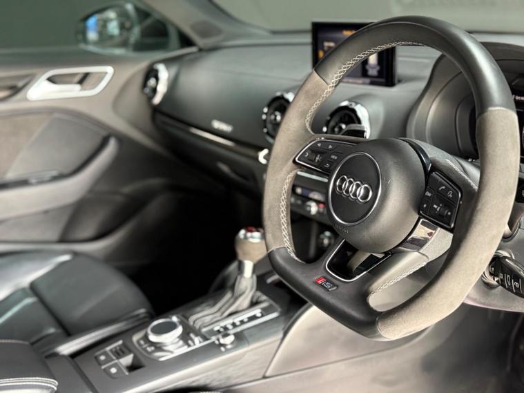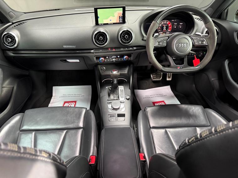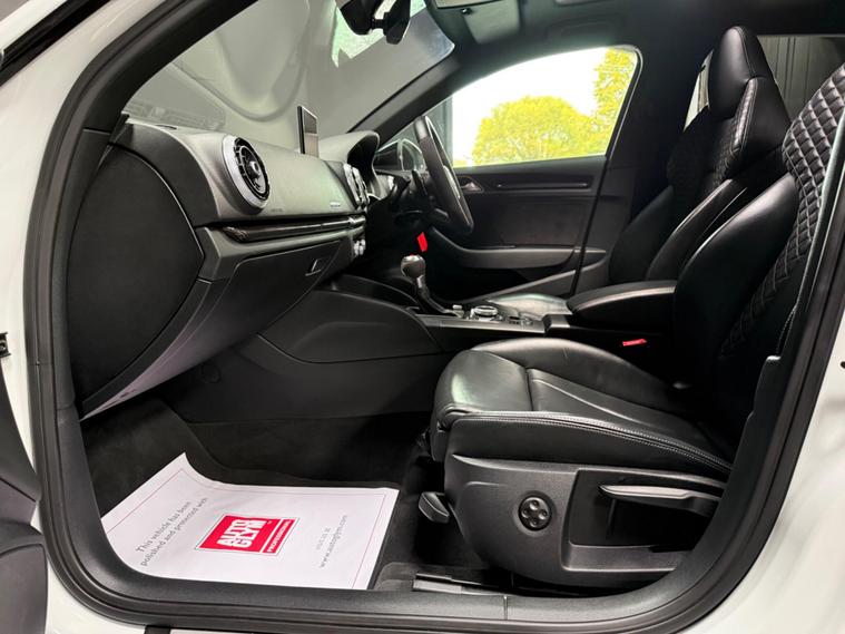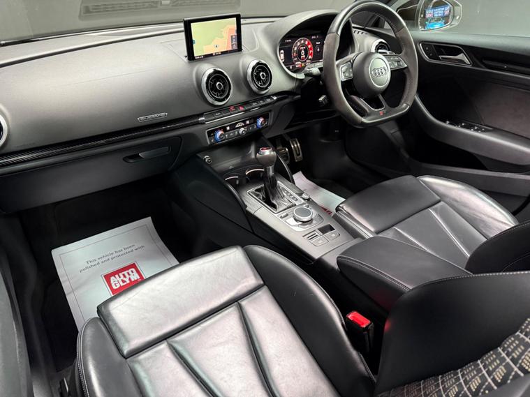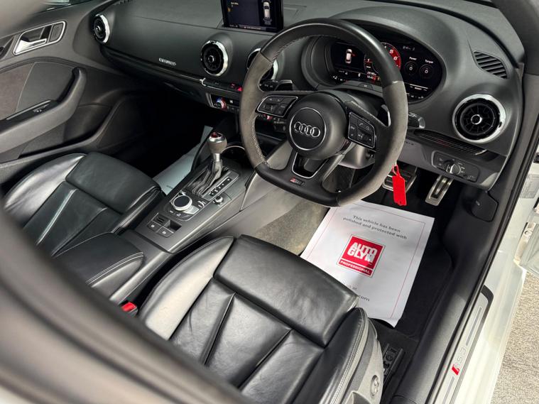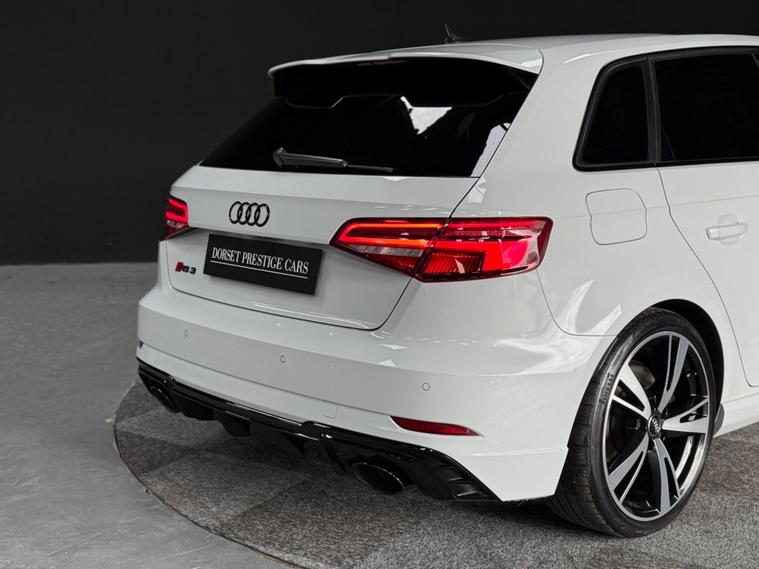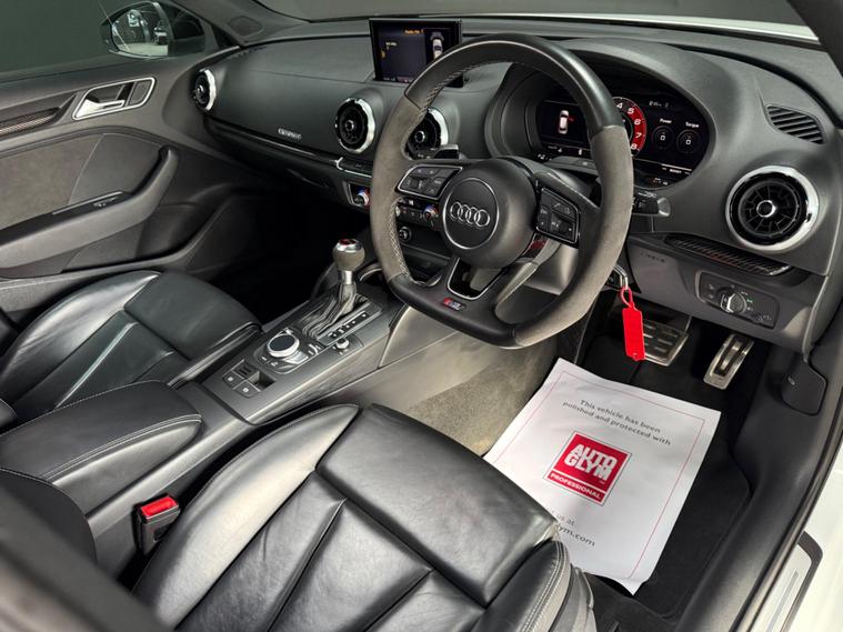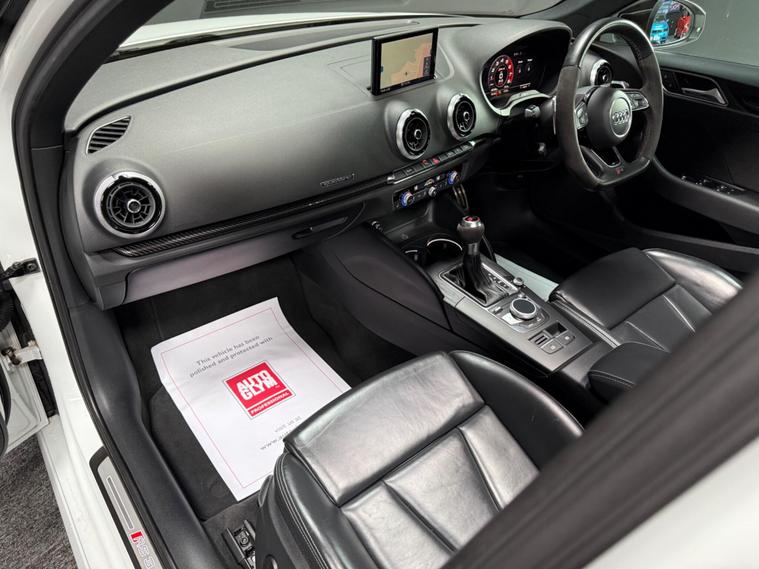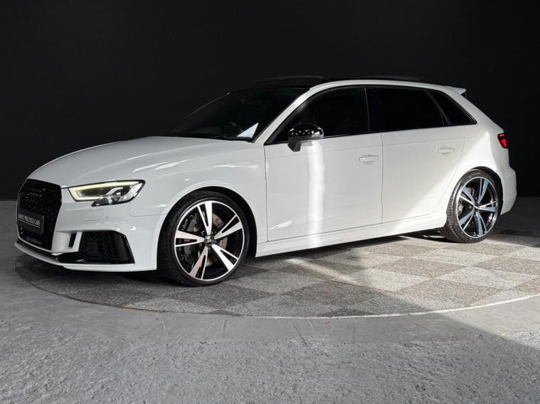 Dorset Prestige Cars are proud to present to you this Lovely Example 2019 Audi RS3 2.5 TFSI Audi Sport Edition Sportback S Tronic quattro. Only 2 Owner From new backed up with Full Service History. Finished in Glacier white, metallic with Black Leather Heated Interior, 19inch Diamond Cut RS Alloy Wheels with PZero Tyres, Black Callipers, Front & Rear Parking sensors, Privacy pack, Panoramic Glass Sliding Roof, Daytime running lights, Carbon Interior Pack, satellite navigation, Alcantara flat bottom multifunction steering wheel, Alcantara gear lever, lumber support Seats, automatic Cadillacs, virtual cockpit, DAB radio, heated seats, cruise control, black roof lining, drivers centre armrest with storage, iso fix seats, heated electric adjust mirrors. Service History = 14/8/19@19 Pre delivery Inspection Audi Main dealer, 3/10/20@3134 Audi Main dealer, 25/8/21@7549 Audi Main Dealer , 31/8/23@17886 Specialist, 27/8/24@21472 Specialist, 6/10/25@28176 Silver service, 4x new tyres, rear brake pads This vehicle is HPI clear, comes with original book pack with manuals. This is a very clean nice low mileage example.Nationwide Delivery Trailered or Driven you Choose, 6 Months Warranty+ Extended warranties available 12 Months AA Breakdown....This vehicle comes with 6 months Warranty for full peace of mind (up to 36 month extension available), 3 or 5 year ceramic coating available, train station collection service, nationwide delivery available on all vehicles. Part Exchange welcome. Open Monday to Saturday ***Viewing By Appointment Only*** All Major Credit and Debit Cards Accepted. Please visit our website for more information on our services and to view our other vehicles currently in stock. Secure this vehicle today for £500 deposit T&C’s Apply! All our vehicles are HPI clear and have been through our workshop for a full health check for peace of mind. See our 5***** reviews , Buy with confidence through us. Find us on Facebook Instagram and YouTube! View our full range of cars on our website and Autotrader profile..