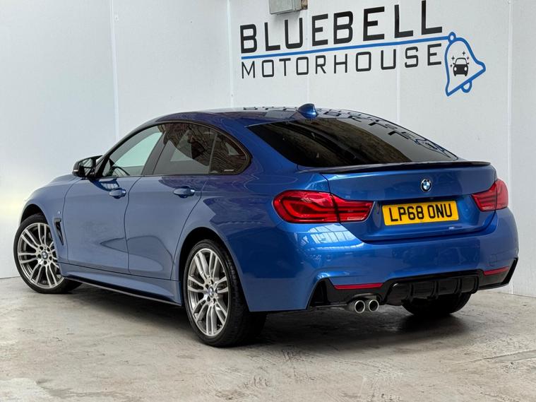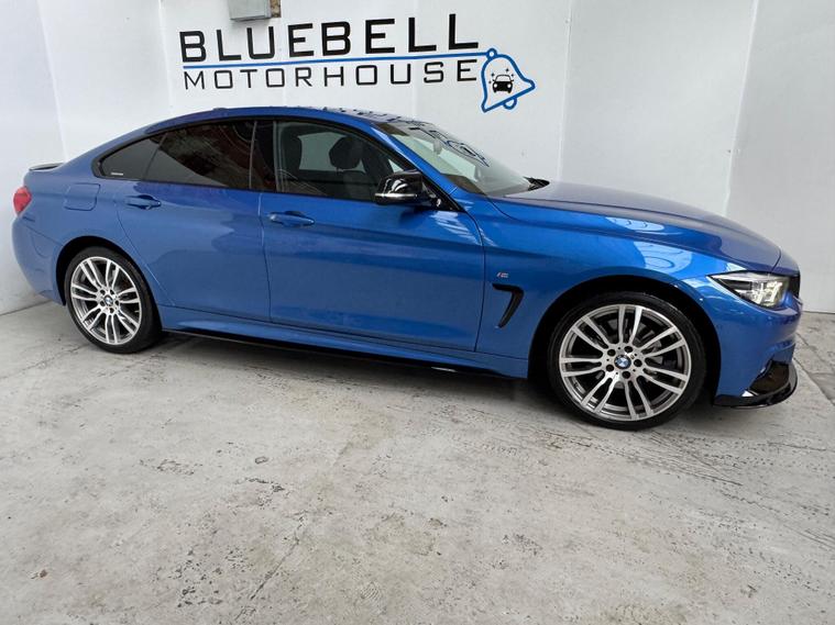Bluebell Motorhouse is proud to present to you a fantastic example of this BMW 4 Series Gran Coupe 3.0 430d M Sport Auto xDrive. With its BMW M Aerodynamic Curves, it also has a Beautiful Gloss Black Body-kit, consisting of the Twin Slat Kidney Grills, Rear Spoiler, Front Splitter, Side Skirts and Rear Diffuser to further compliment its irresistible looks. Whichever way you look at it, it is the Perfect all round family saloon or it can even be an evil torquey 3.0L grand tourer, but whatever the occasion, its the ideal car for anyone looking to buy one of BMW's Greatest Hits. The 3.0 Straight Six Turbocharged 250+ BHP Engine with upwards of 550 NM of Torque is handled efficiently by the 8 Speed Automatic ZF Gearbox. This BMW offers an incredible amount of options from factory, some of which include Foot operated and electrically controlled boot release, BMW Adaptive LED Headlights with High Beam Assist, Front and Rear Parking Sensors with a Rear View Camera, Heated Steering Wheel, Adaptive Cruise Control, Heated Front Seats, Tri-Zone Climatized Air Control, Automatic Headlights and Rain Sensing Wipers, Professional BMW Media with Satellite Navigation, DAB with Radio CD Player, Bluetooth, Electric Front and Rear Windows, Electric Folding Mirrors, Keyless Entry, Electric Front seats with Driver memory, USB/AUX, Touch Screen 8.8 Inch Screen with Multiple features, Heads-Up Display and much more! This vehicle also has FULL GENUINE BMW History! (7 Services in total). The current MOT expires on 25/03/2026 and it also has 2 keys. The car is finished in the Manufacturer colour of Estoril Blue Metallic with Dakota Leather seats and 19 inch alloy wheels. This car is in excellent condition throughout, some very light marks and chips around the car but all fitting with age and mileage. It drives like a dream. Any inspection is welcome. Comprehensive Warranty included, 12 months breakdown cover and much more which can be extended subject to terms and conditions! Last serviced on 02/07/2025 at 46, 335 miles. Low interest finance available.