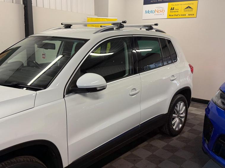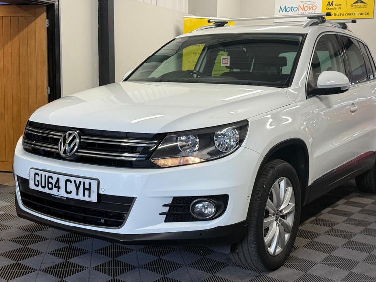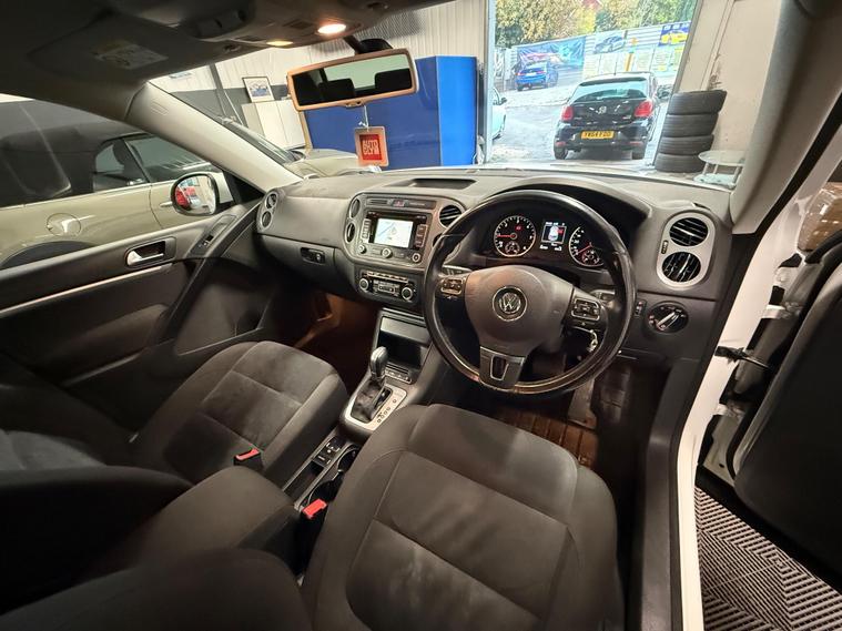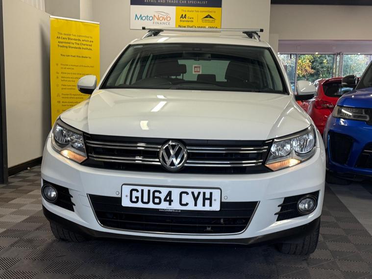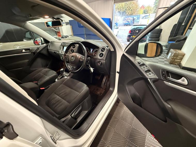2014 Volkswagen Tiguan 2.0 TDI BlueMotion Tech Match DSG 4WD Euro 5 (s/s) 5dr. 69, 780 miles. Two former keepers. Supplied with full V5, two keys, and book packs.Finished in Pure White with Alcantara Milan cloth upholstery in Titan Black, this Tiguan Match is a clean and well-presented example. It has recently had both rear arm bushes replaced. Please see the walkaround video and photos for the full condition.Service history is on file as follows: 2016 Volkswagen, 2017 Volkswagen, 2018 Volkswagen, 2019 Volkswagen with timing belt replacement, 2020 Volkswagen, 2021 Volkswagen, 2022 independent, and 2023 independent. A service and MOT will be completed as part of the preparation process.Volkswagen has confirmed that the timing belt interval is every 140, 000 miles, with no specific time stipulation.A three-month comprehensive warranty is included, with the option to extend for up to two years. Part exchange is welcome for any value, and our Buying Department can provide prompt valuations. Nationwide delivery is available at a competitive cost upon request.You can reserve this vehicle today with a £250 fully refundable deposit. We have over 150 vehicles in stock across our two sites to choose from. Established in 2021, we pride ourselves on our excellent reviews and commitment to customer service.As an AA Approved Dealer with Trading Standards endorsement, you can buy with confidence knowing all our retail vehicles are fully health-checked and prepared to the highest standard. Every car includes 12 months of free AA roadside breakdown and recovery, regardless of age, value, or mileage.We are authorised and regulated by the Financial Conduct Authority under FRN: 1014981..