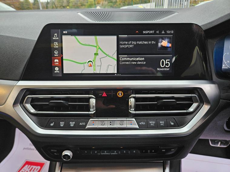 This 2021 BMW 3 Series 320d M Sport is a Euro 6 compliant vehicle, offering an efficient and dynamic driving experience. Featuring a 2.0L Diesel Hybrid engine, this M Sport trim model comes equipped with the advanced BMW Live Cockpit Professional, including Bluetooth connectivity, and an Incorrect Fuelling Protection System for added peace of mind. Comfort is enhanced by the three zone automatic air conditioning with climate control, while parking is made effortless with front and rear Park Distance Control, supported by front and rear parking sensors and automatic parking assistance. The rain sensor automatically activates the headlights, ensuring visibility is always optimal.The performance of this BMW 3 Series is truly impressive, accelerating from 0 to 62mph in just 6.8 seconds. This rapid acceleration demonstrates how this vehicle outperforms many others in its class. The combination of its powerful yet efficient hybrid diesel engine, sophisticated M Sport styling, and a suite of intelligent features makes this 320d M Sport a compelling choice for those seeking a premium driving experience.This vehicle boasts full BMW main agent service history with services carried out at 9 miles (pdi), 12430 miles, 28342 miles, 44618 miles, 51830 miles, 52704 miles, 59498 miles, 70369 miles and 74575 miles meaning it has been maintained to the very highest standard.This superb BMW is presented in excellent condition throughout and drives superb. Viewing, test drive and inspection welcome.Finance available..
