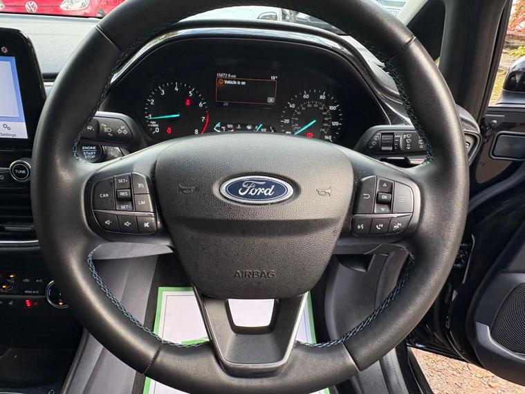 Discover the 2024 Ford Fiesta T Active X Edition, a stylish and well equipped hatchback ready for your next adventure. This Euro 6 compliant model boasts a responsive 1.0L petrol engine, offering an efficient and enjoyable driving experience. Inside, you'll find a premium B and O PLAY In Car Audio system, seamlessly integrated with the Ford SYNC 3 Navigation System and FordPass Connect, providing access to Android Auto and Apple CarPlay for effortless connectivity. The Ford KeyFree System allows for convenient keyless entry, while automatic headlights and rear parking distance sensors enhance both safety and ease of use.The Active X Edition trim level signifies a higher specification, offering a superior experience compared to standard models. The inclusion of the NCAP Pack, which incorporates automatic headlights, underscores Ford's commitment to safety. This Fiesta is designed to impress with its blend of advanced technology, comfort, and practicality, making it an excellent choice for those seeking a refined and capable compact car..