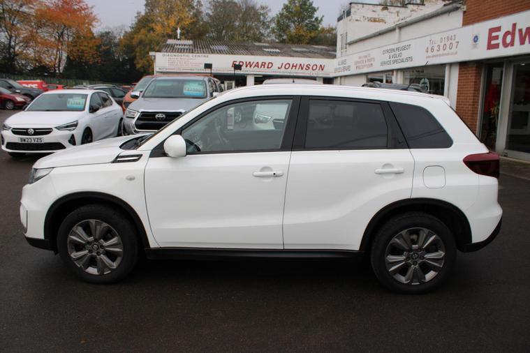 This 2022 Suzuki Vitara SZ-T is a superb example, having been owned by just one careful keeper since new. This compact SUV boasts a responsive 1.5 litre petrol hybrid engine, meeting Euro 6 emission standards. Inside, you'll find the Smartphone Linkage Display Audio system, seamlessly integrating your Android Auto or Apple CarPlay for easy access to your favourite apps. Driving is made safer and more convenient with the Blind Spot Monitor, which includes Blind Spot Assistance, and Adaptive Cruise Control to maintain a set distance from the vehicle ahead. Enjoy effortless connectivity with the integrated Bluetooth system and maintain a comfortable cabin temperature with the automatic air conditioning.The Suzuki Vitara SZ-T offers impressive efficiency, achieving a highlight fuel economy of 54 miles per gallon, which indicates its advantage over many similar vehicles. Furthermore, its low CO2 emissions contribute to a more environmentally conscious drive. This combination of economical running costs and advanced technology makes this Vitara a compelling choice for those seeking a practical and well equipped compact SUV..