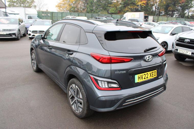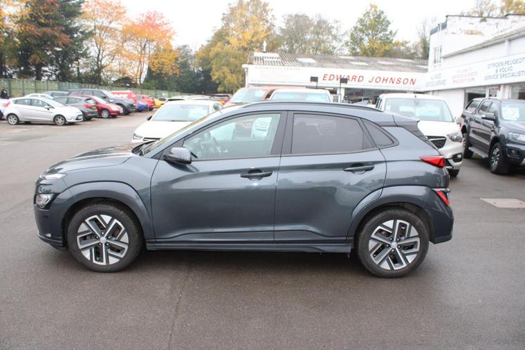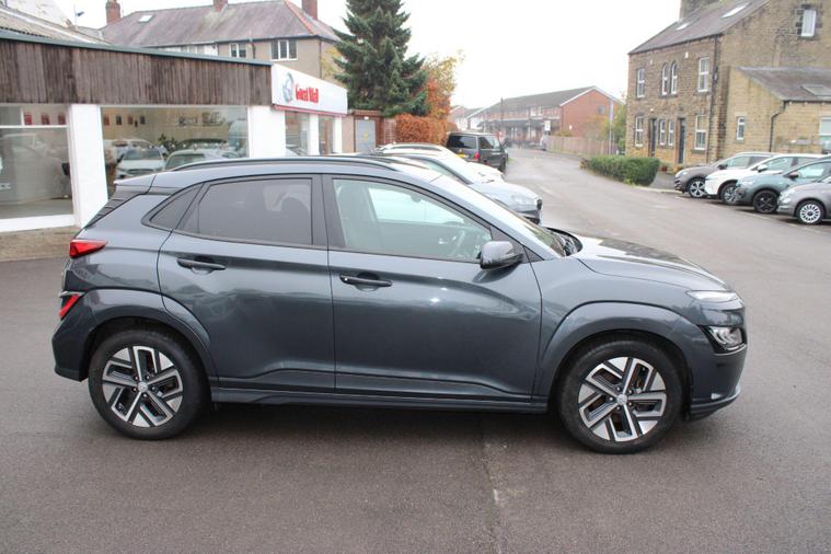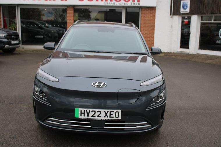 This 2022 Hyundai KONA Premium Electric is a superb example, having been owned by only one person since new. This desirable electric SUV boasts a substantial 68 kWh battery, offering an impressive maximum range of 300 miles when new, making it ideal for both daily commutes and longer journeys. The Premium trim level ensures a well equipped driving experience, featuring automatic headlights that activate with the dusk sensor, a heated steering wheel for added comfort on colder days, and smart adaptive cruise control with stop and go functionality for effortless motorway driving. Safety is also a priority, with blind spot collision avoidance assist providing an extra layer of awareness, and seamless phone connectivity through Android Auto.The convenience of this KONA extends to its charging capabilities. A full charge at home using a 7kW charger takes approximately 10 hours and 16 minutes, perfect for overnight top ups. For faster charging on the go, you can achieve an empty to 80% charge in just 53 minutes at a compatible public charging station. These features, combined with its excellent range and single owner provenance, highlight how this Hyundai KONA Premium Electric offers a compelling and practical choice for those seeking an efficient and well appointed electric vehicle..