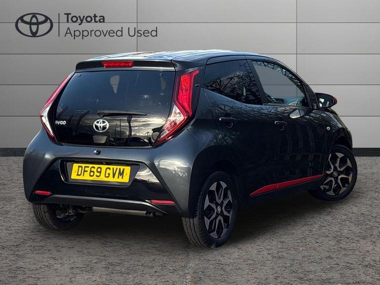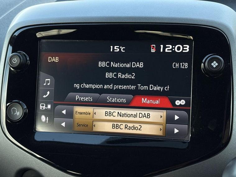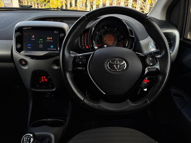 This 2019 Toyota AYGO VVT-i x-trend benefits from being Toyota manufacturer approved, offering you peace of mind. This stylish hatchback is equipped with a 1.0L petrol engine and meets Euro 6 emissions standards. It comes with a 12 month warranty for added security. Inside, you'll find the 7in x-touch Multimedia System, complete with Bluetooth connectivity and smartphone integration for both Apple CarPlay and Android Auto. Comfort is assured with automatic air conditioning, and convenience is enhanced by auto headlights.The AYGO x-trend stands out with its impressive fuel economy, achieving a highlight of 57 mpg, which is better than many other vehicles in its class. Furthermore, its low insurance group and low CO2 emissions indicate that running costs are kept to a minimum, making it an economical choice for everyday driving..