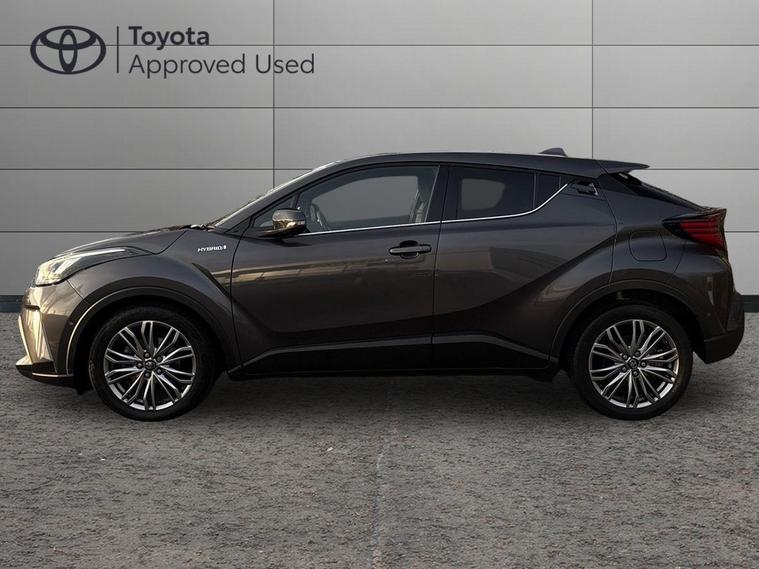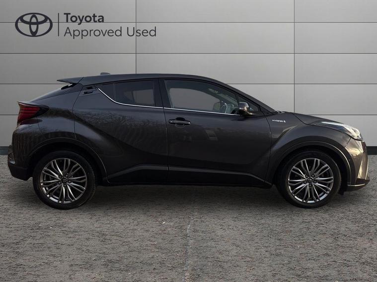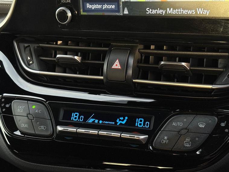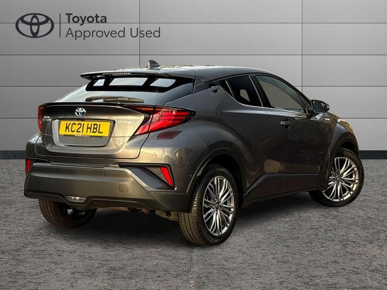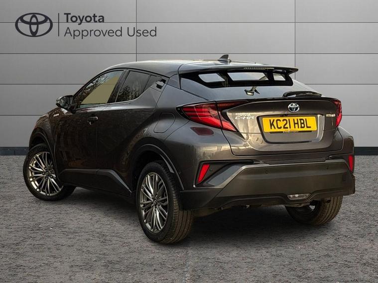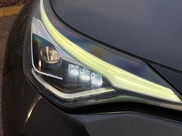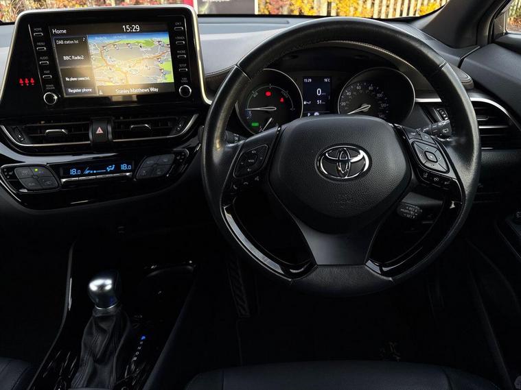 This 2021 Toyota C-HR VVT-h Excel is a Toyota manufacturer approved vehicle, offering peace of mind with a 12 month warranty and an MOT valid until August 2026. It boasts a full service history, with its last service completed on 2025-03-15 at 29483 miles, ensuring excellent provenance. This Euro 6 compliant model features a 1.8L petrol hybrid engine and comes equipped with a heated driver and front passenger seat, a heated steering wheel, adaptive LED headlights, and auto headlights for enhanced visibility and comfort.The Toyota Touch 2 multimedia system, complete with an 8in display, offers seamless connectivity through Android Auto, Apple CarPlay, and Bluetooth. This C-HR stands out with its impressive fuel economy, achieving 57 mpg, and benefits from a low insurance group and low CO2 emissions, indicating it is a more economical and cost effective choice compared to similar vehicles..