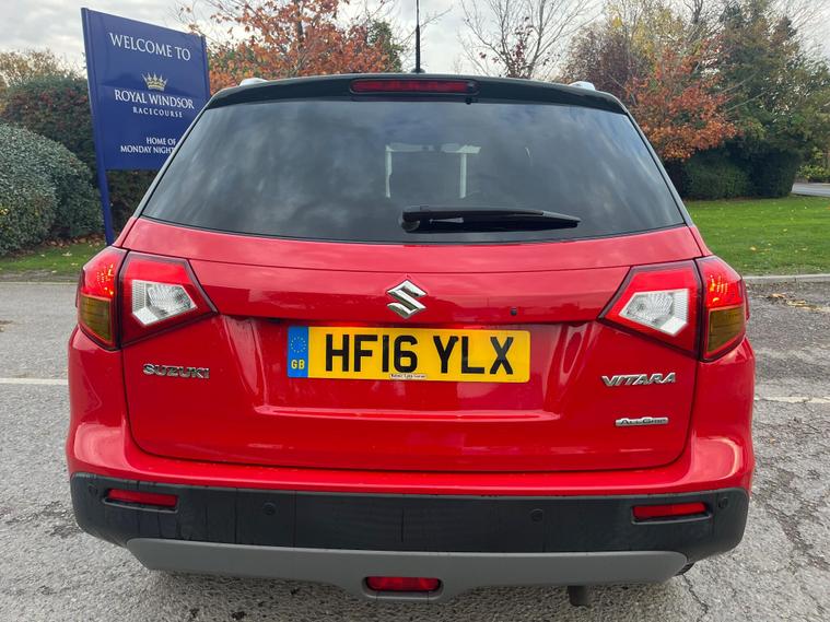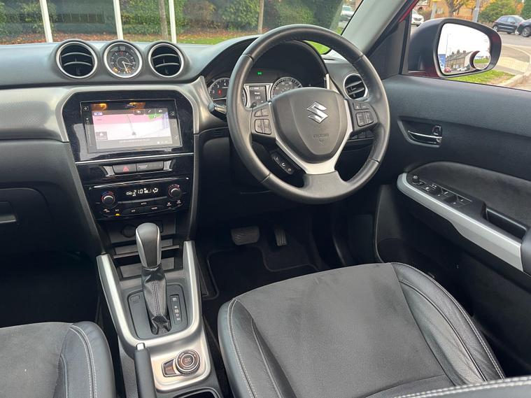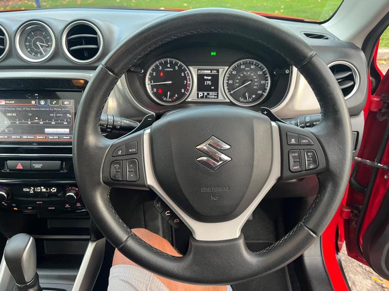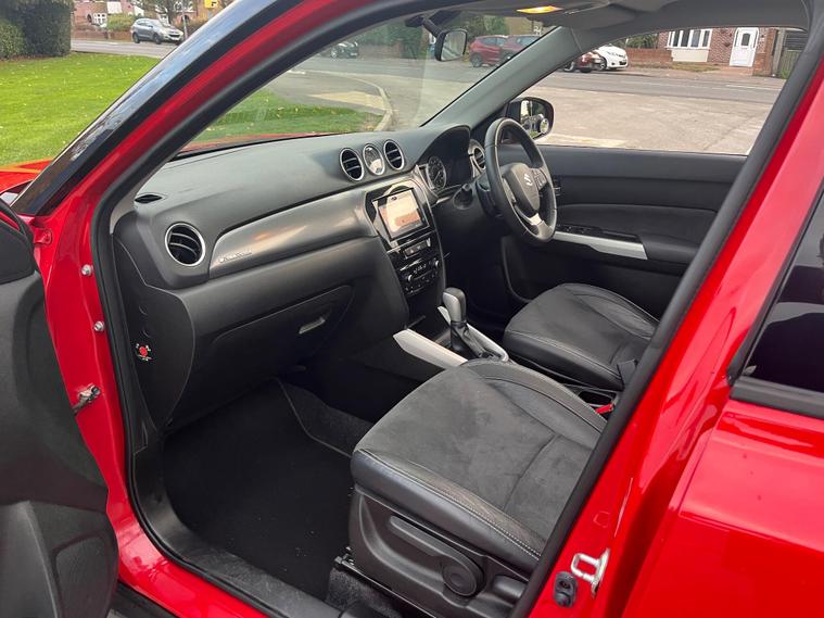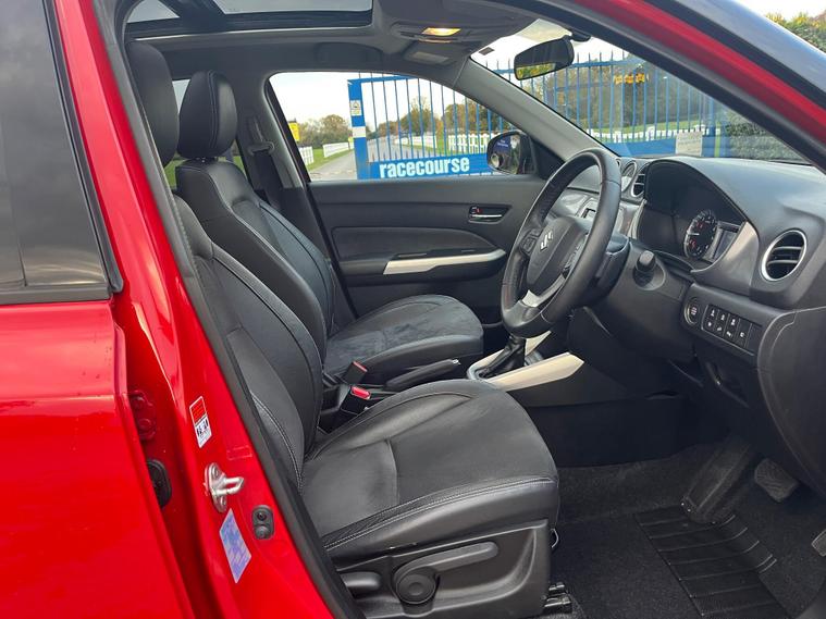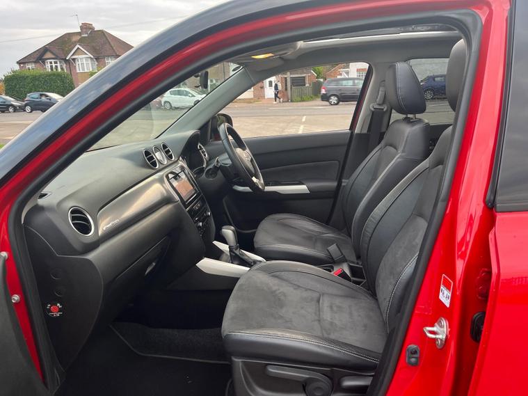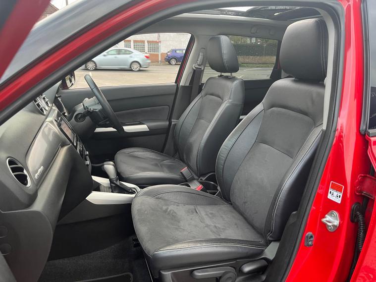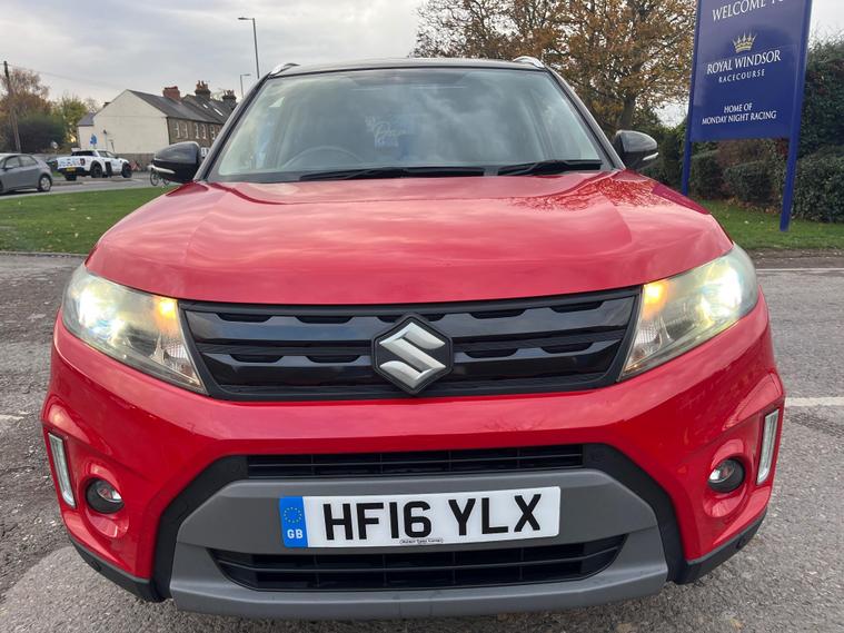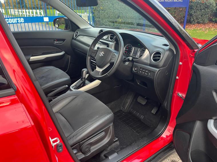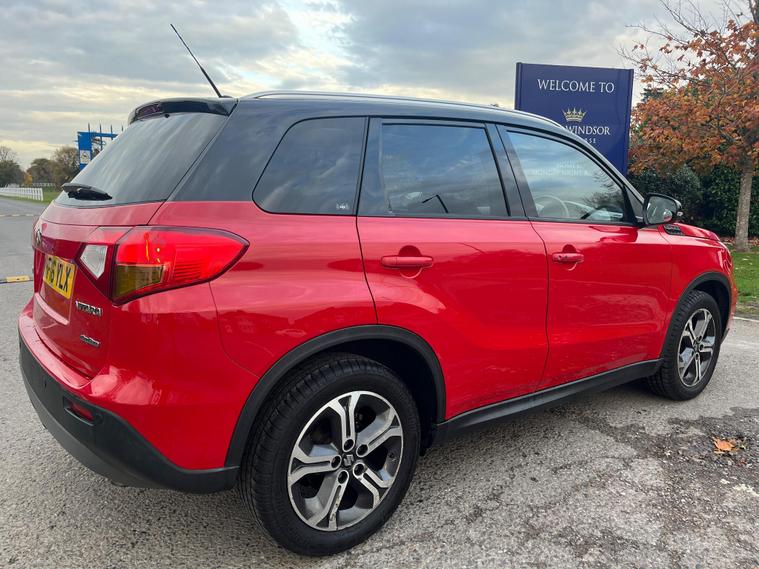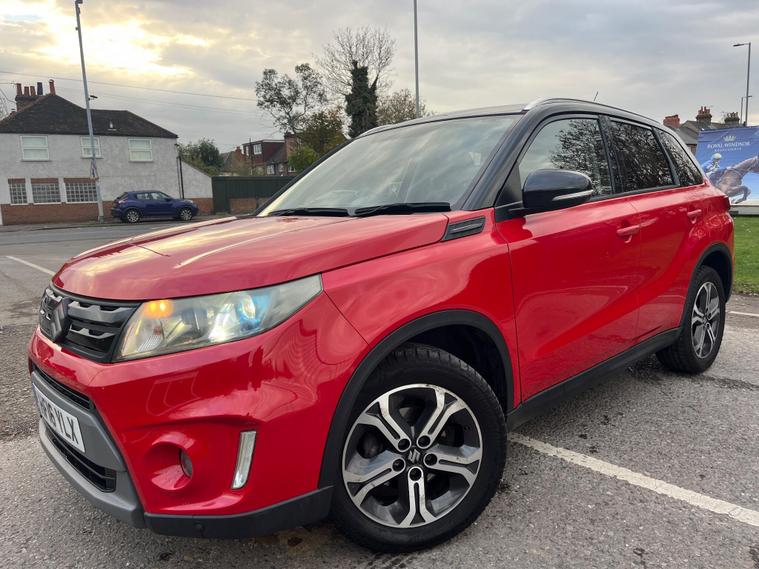 THE CAR ALLOY WHEELS ARE to BE FULLY RE-FURBISHED IN THE NEXT DAY OR SO AND A WILL HAVE A PROFESSIONAL DETAILED VALET ALSO. THIS Suzuki Vitara 1.6 SZ5 AUTOMATIC ALL GRIP 4X4 Euro 6 (s/s) 5dr LOOKS AMAZING IN FERRARI RED WITH BLACL LEATHER AND SUEDE HEATED SEATS COMES WITH A NEW MOT WITH NO ADVISES & A NEW SERVICE THIS WEEK. THERE IS A FULL SUZUKI MAIN DEALER SERVICE HISTORY. THE 4X4 HAS POWER STEERING, PANORAMIC GLASS OPENING SUNROOF, WIDE SCREEN COLOUR SATNAV UNIT, STEREO RADIO CD MULTI PLAYER, BLUETOOTH TELEPHONE CONNECTION, DUAL ZONE CLIMATE CONTROL AIR-CONDITIONING, REMOTE CONTROL CENTRAL LOCKING SYSTEM, ZENON HEADLIGHTS, FRONT & REAR PARKING SENSORS, WITH REVERSING CAMEARA, 18'' ALLOY WITH TYRES. THE CONVERTIBLE COMES WITH 2 SETS OF KEYS & ALL THE BOOKS AND MANUALS. This 2016 Suzuki Vitara SZ5 is a superb example, having had only two owners from new. This Four Wheel Drive model boasts a 1.6 litre petrol engine and meets the Euro 6 emission class. It comes equipped with the desirable Urban Design Pack, adding a stylish touch. Convenience is key with automatic headlamps that turn on by themselves, automatic air conditioning for perfect cabin temperature, and adaptive cruise control to make journeys more relaxed. Plus, enjoy the open air with the double sliding panoramic sunroof. The Vitara SZ5 offers excellent value, indicated by its low insurance group and an impressive fuel economy of 50 miles per gallon. Its low CO2 emissions also mean it is a more environmentally conscious choice compared to many other vehicles in its class. This combination of practical features, efficient performance, and appealing running costs makes this Suzuki Vitara a compelling option..